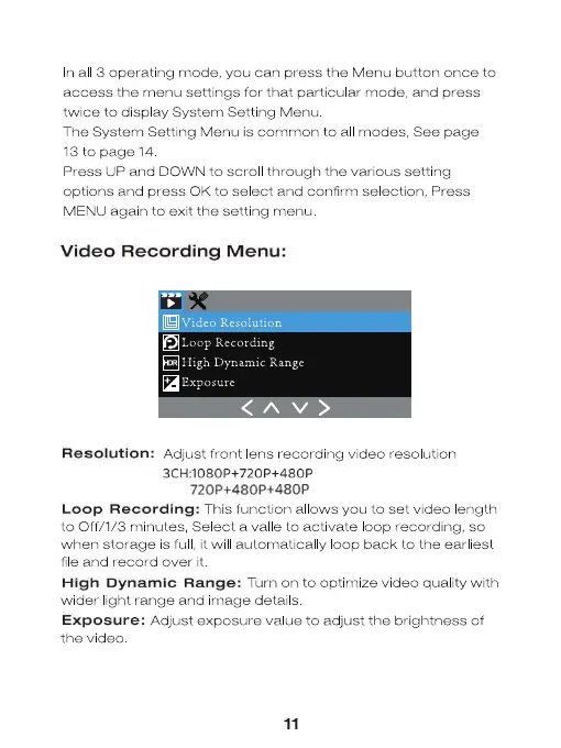 Loop Recording: This function allows you to set video ength