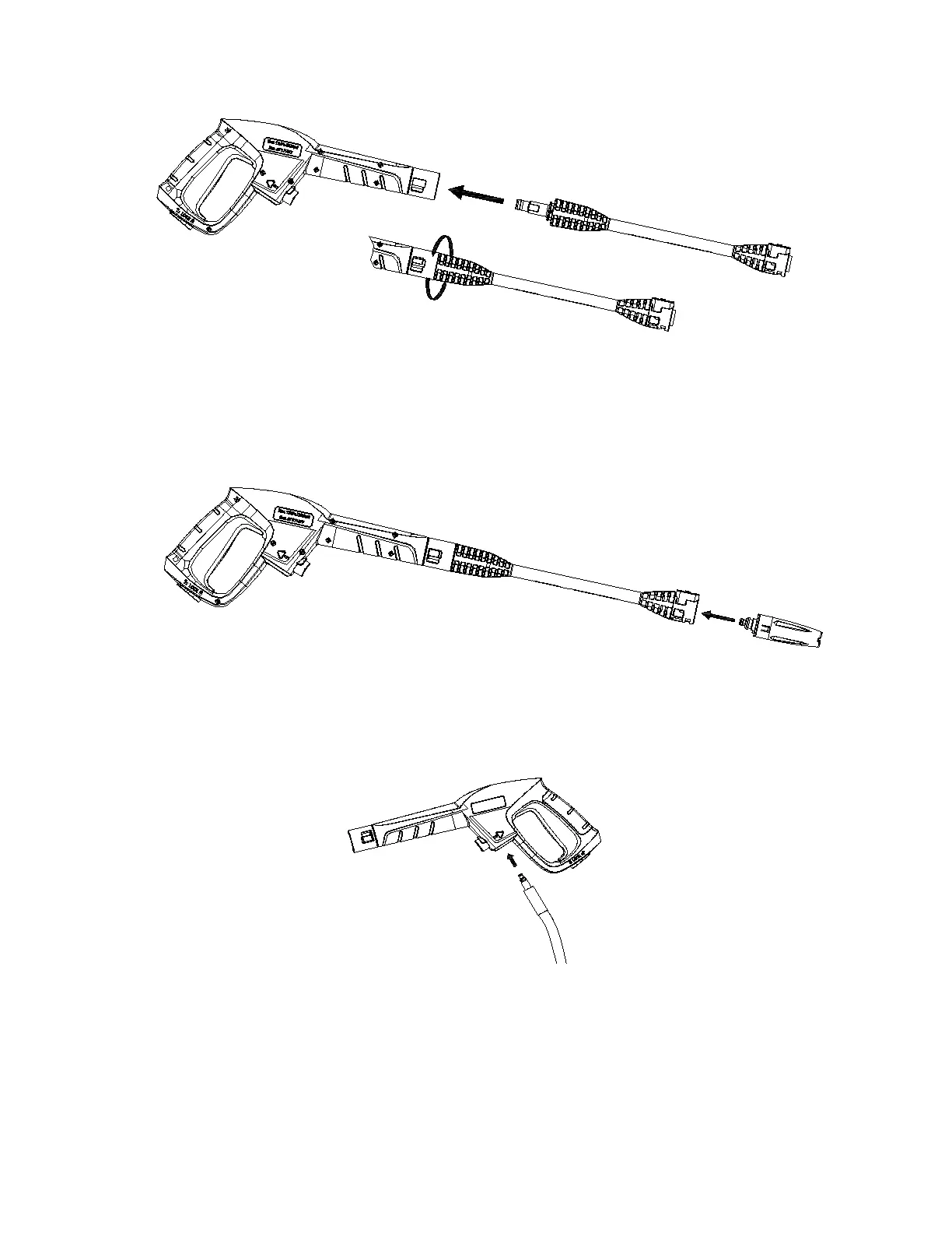 Attach the high pressure hose(C) to the pressure cleaner water outlet. Insert and quick-connect it