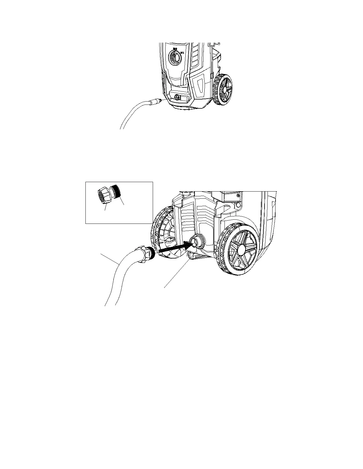 Connect the garden hose adaptor (female coupler) to the water inlet of the pressure washer, then thread your