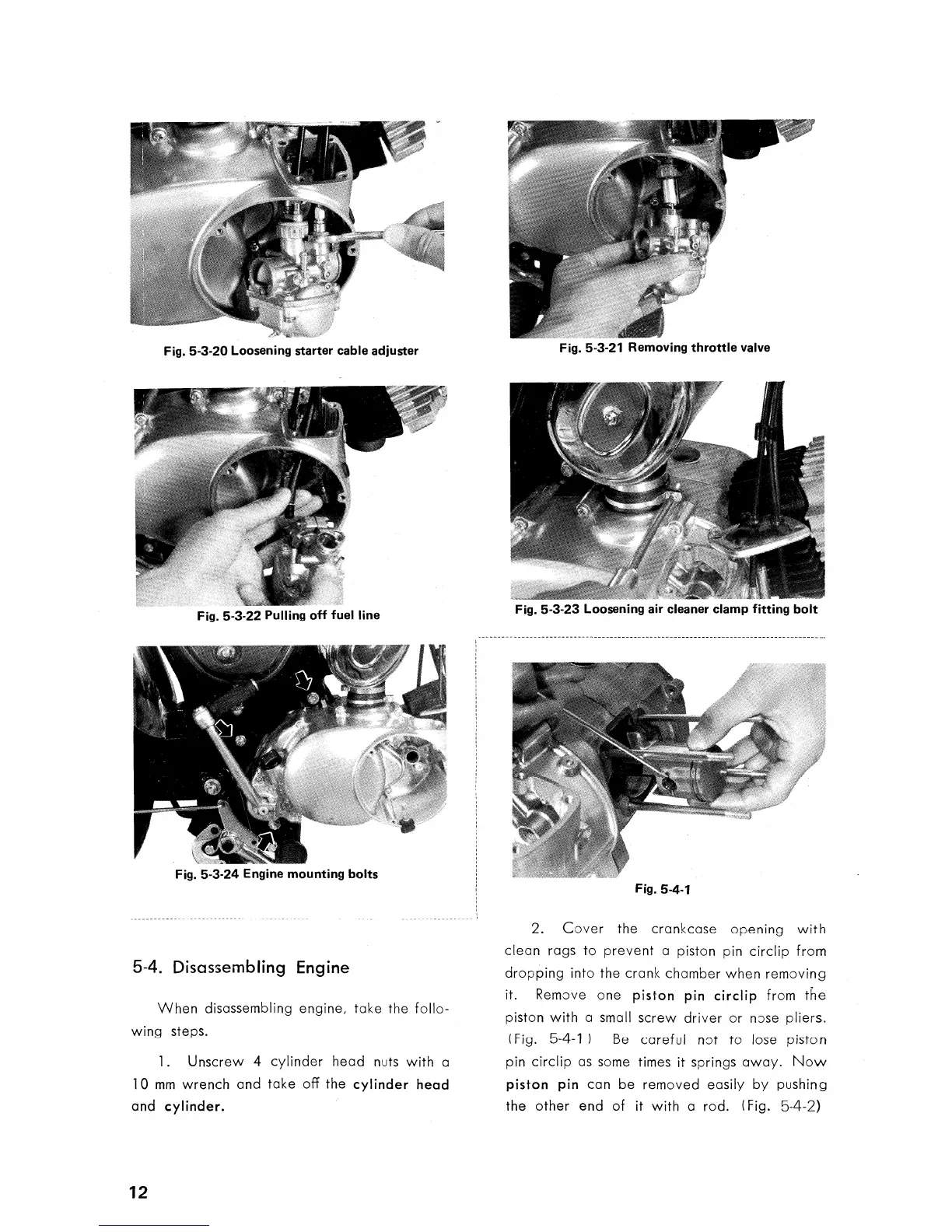 Suzuki A50 - Disassembling Engine; Cylinder and Cylinder Head Removal; Piston Pin Removal