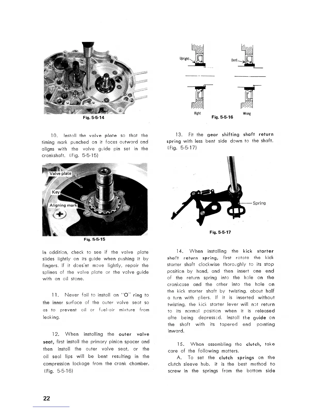Suzuki A50 - Valve Plate and Valve Guide Installation; O-ring and Outer Valve Seat Installation; Gear Shifting Shaft Return Spring Installation; Kick Starter Shaft Return Spring Installation