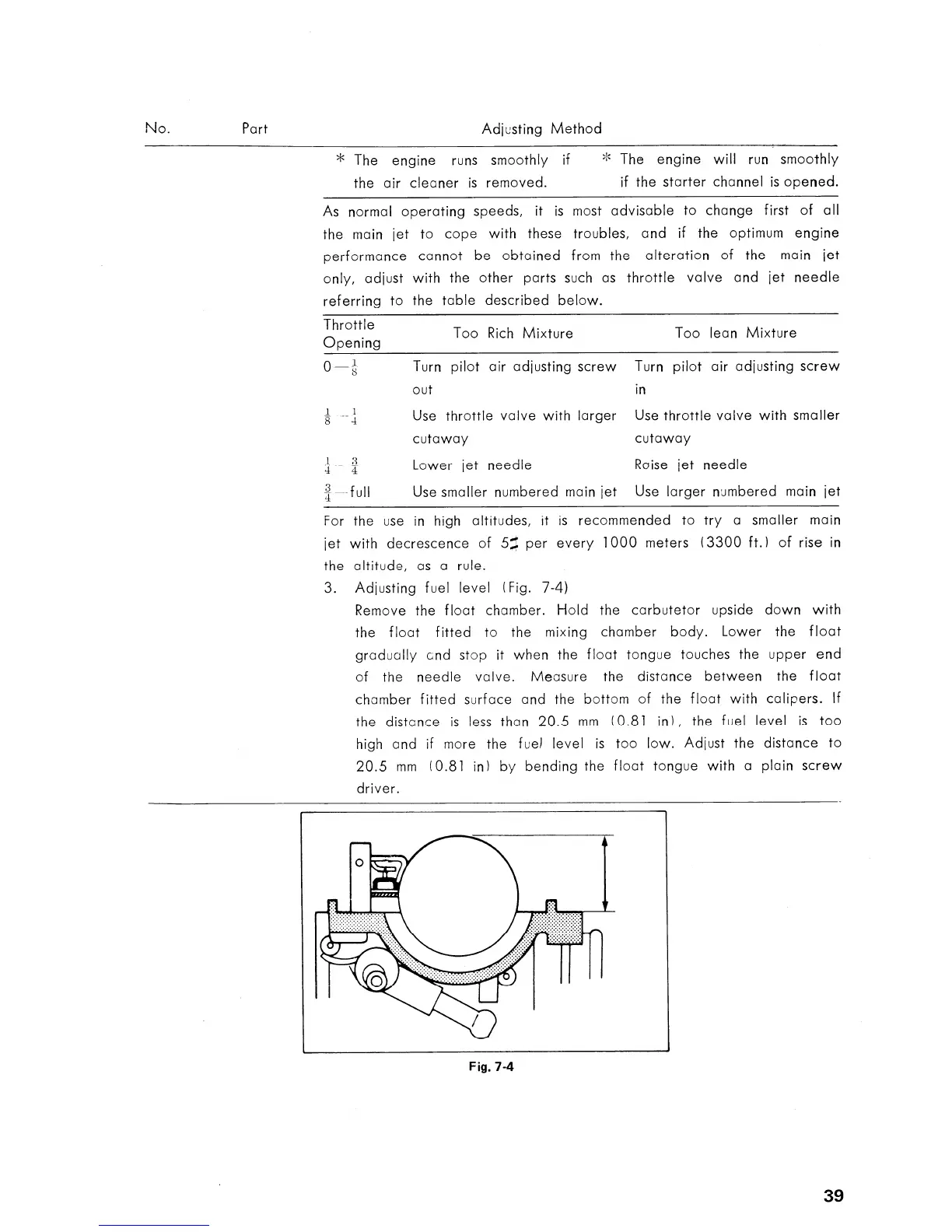 Suzuki A50 - Carburetor Part-Throttle Circuit Adjustment; Carburetor Fuel Level Adjustment