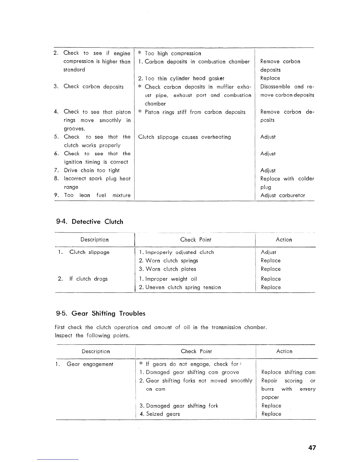 Suzuki A50 - Engine Overheating - Compression and Deposits; Engine Overheating - Clutch and Ignition; Clutch Slippage and Dragging; Gear Shifting Troubles
