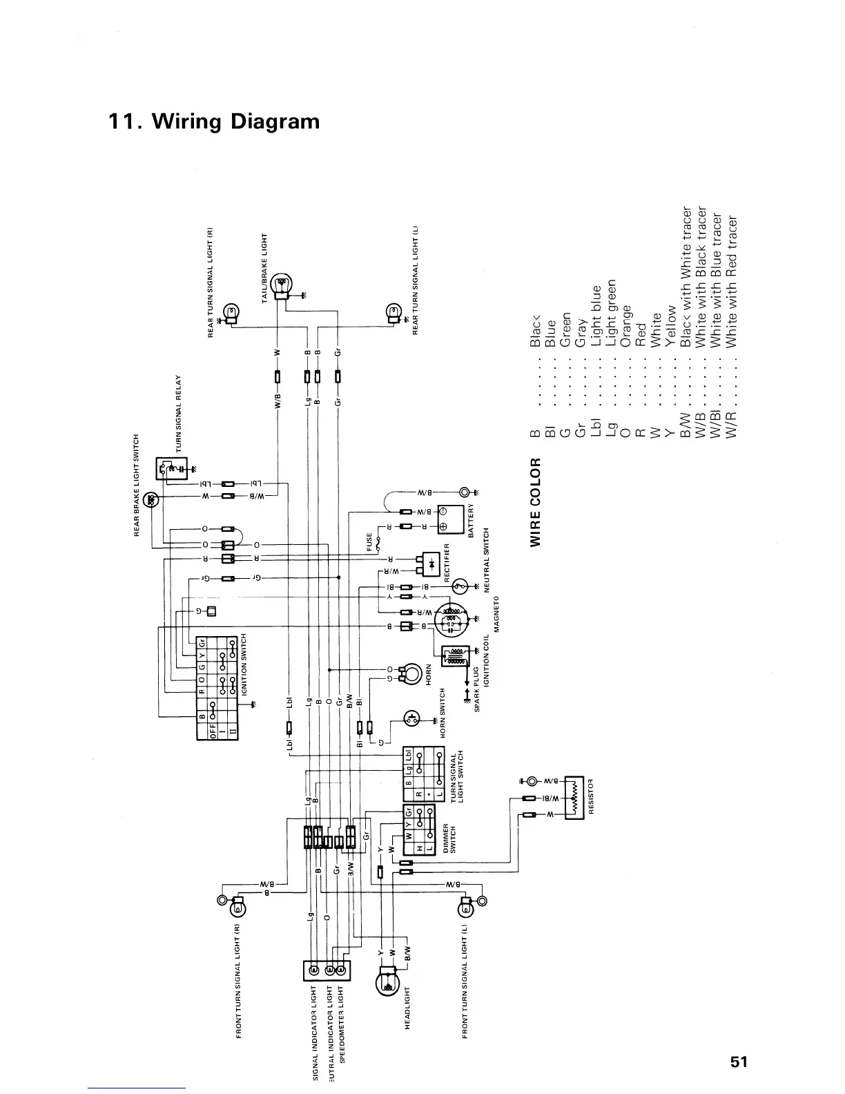Suzuki A50 - Wiring Diagram; Motorcycle Electrical System Diagram; Wire Color Code Key