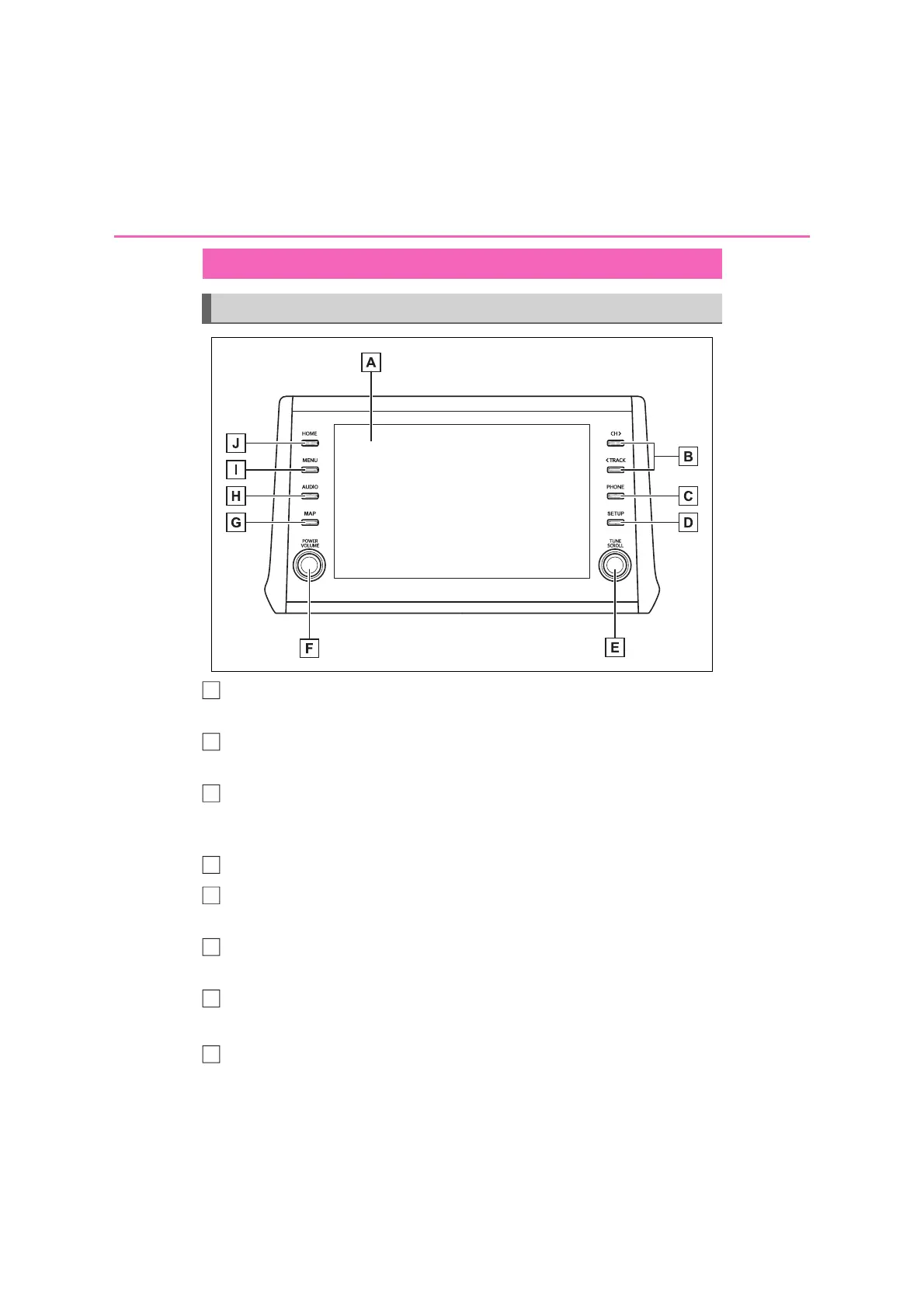 Press to turn the audio/visual system on and off, and turn it to adjust the