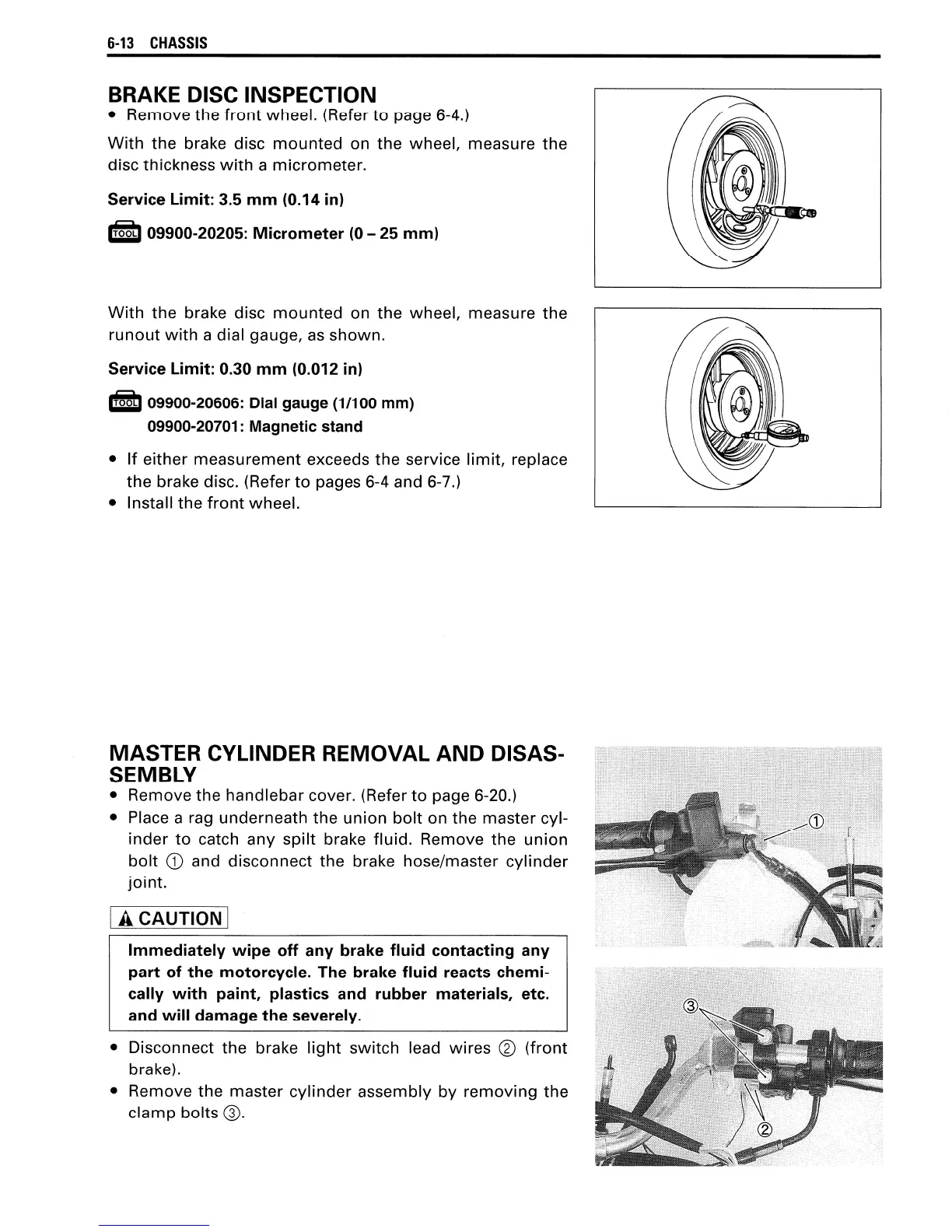 Suzuki AY50 - Brake Disc Inspection; Master Cylinder Removal and Disassembly