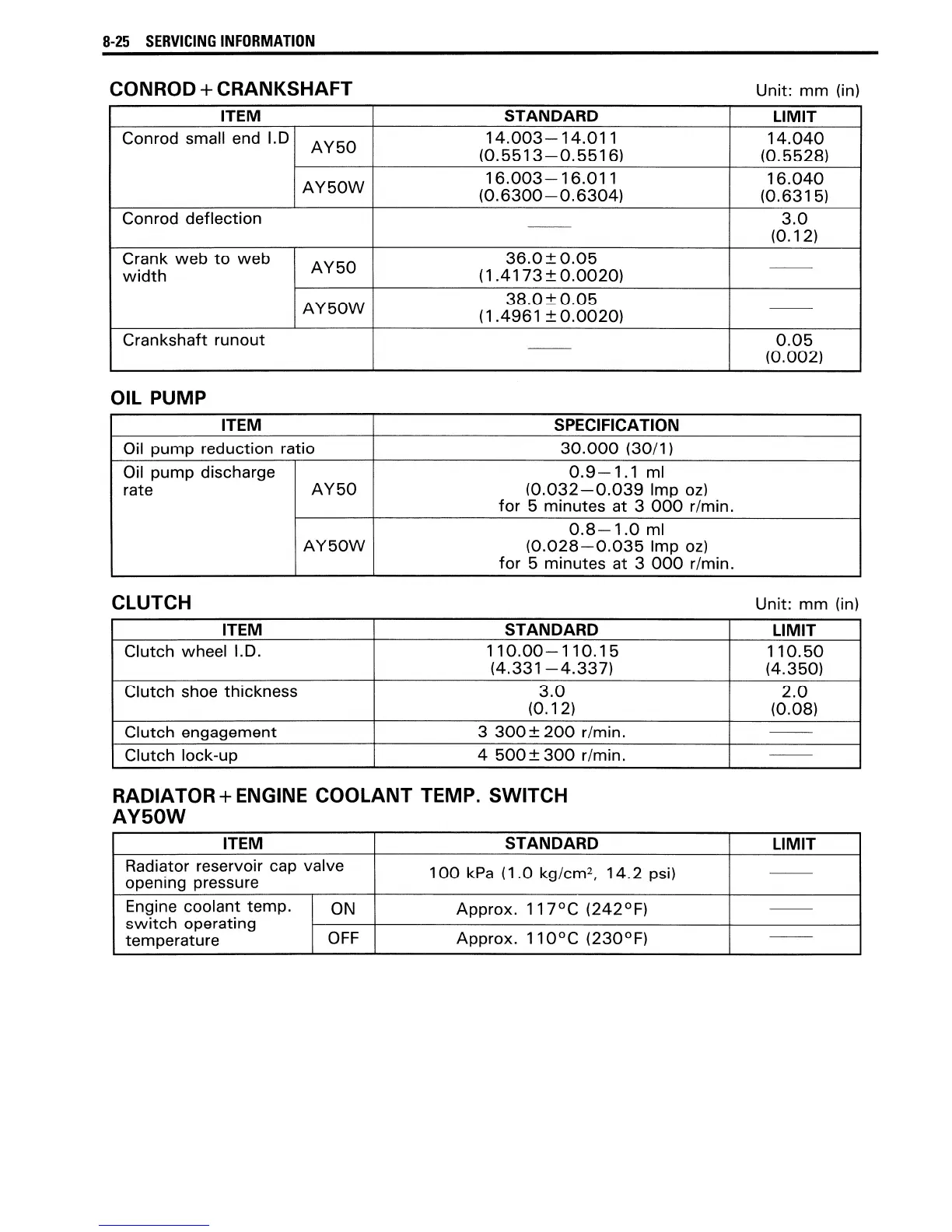 Suzuki AY50 - Clutch; Conrod + Crankshaft; Radiator + Engine Coolant Temp. Switch AY50 W