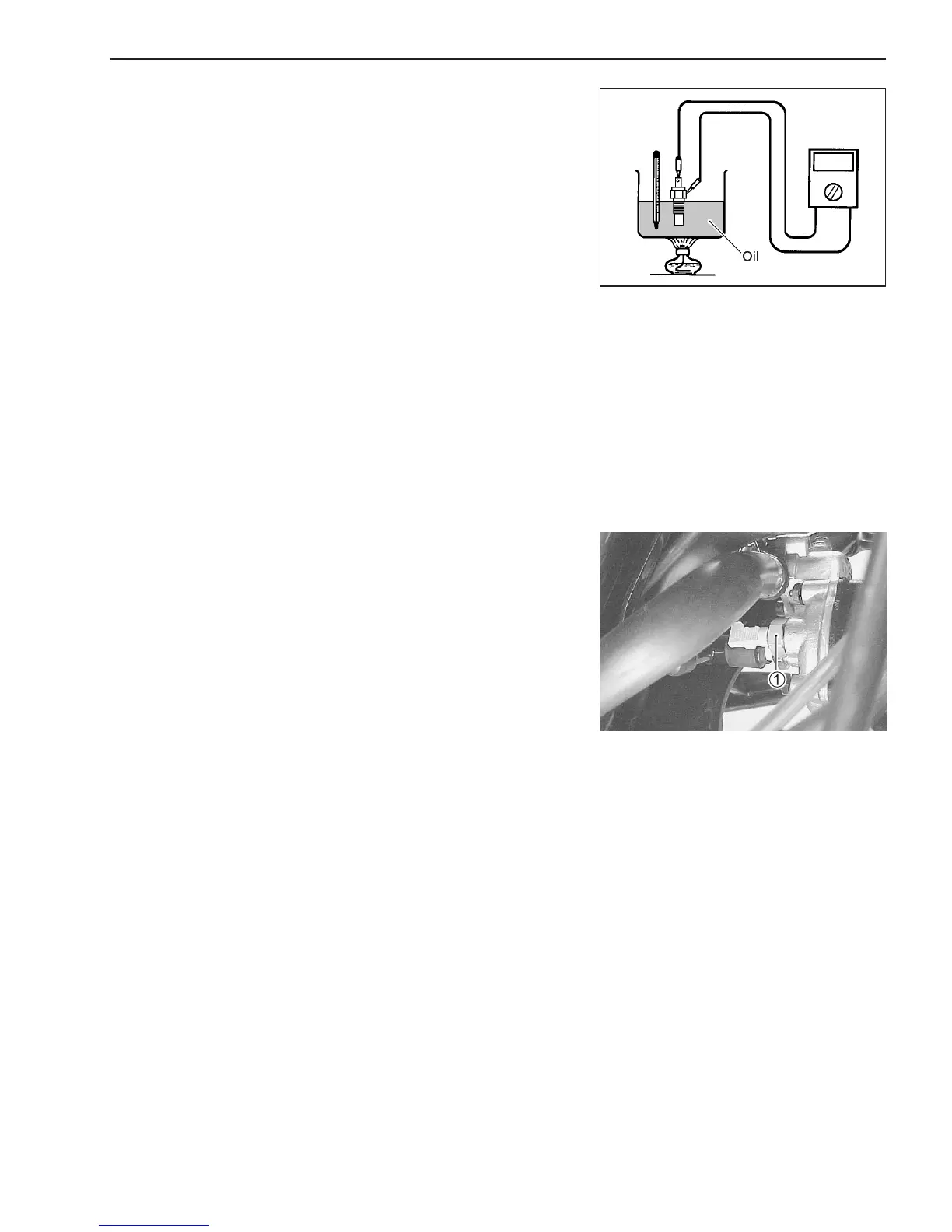 • Place the engine coolant temp. switch into a container of oil.