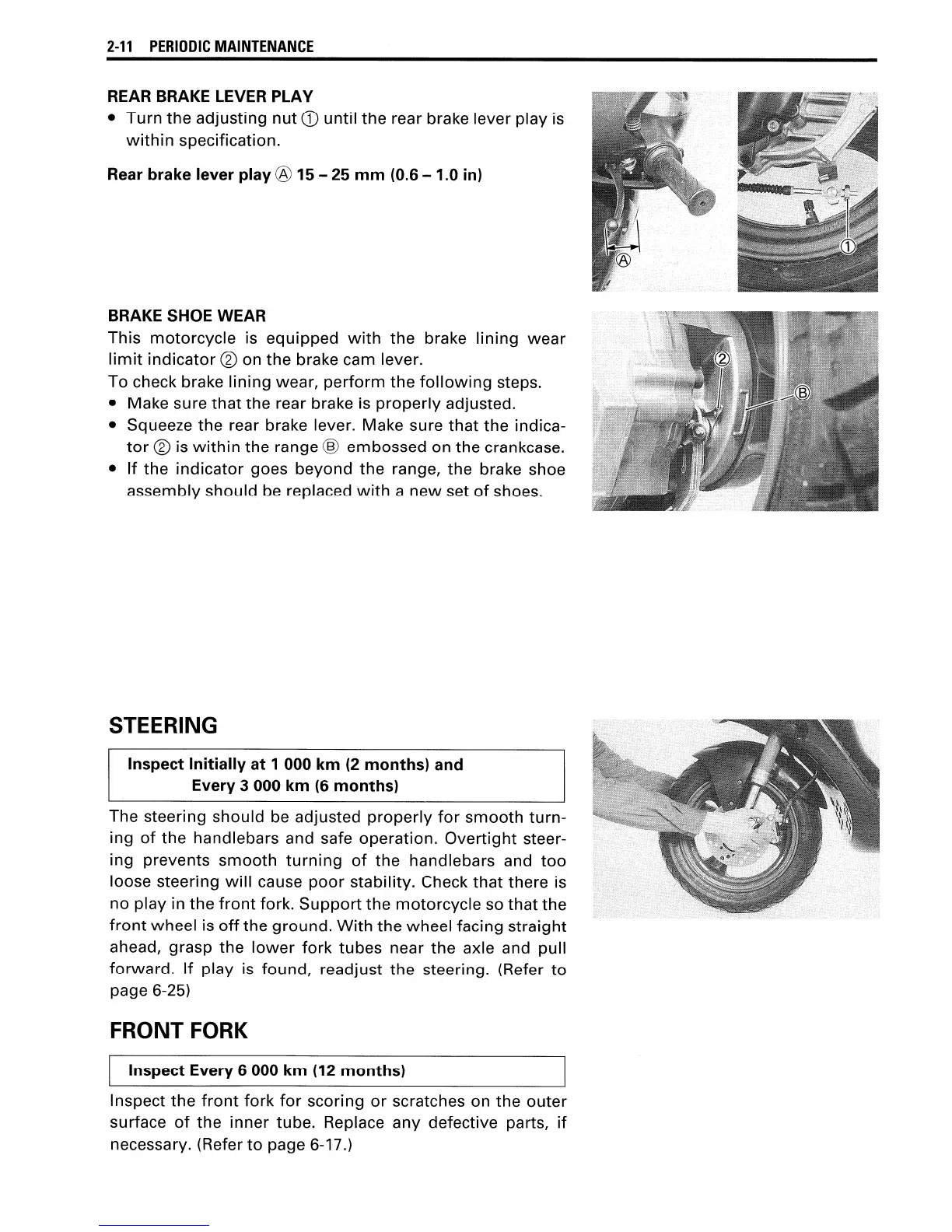 Suzuki AY50 - Brake Shoe Wear; Front Fork; Rear Brake Lever Play; Steering