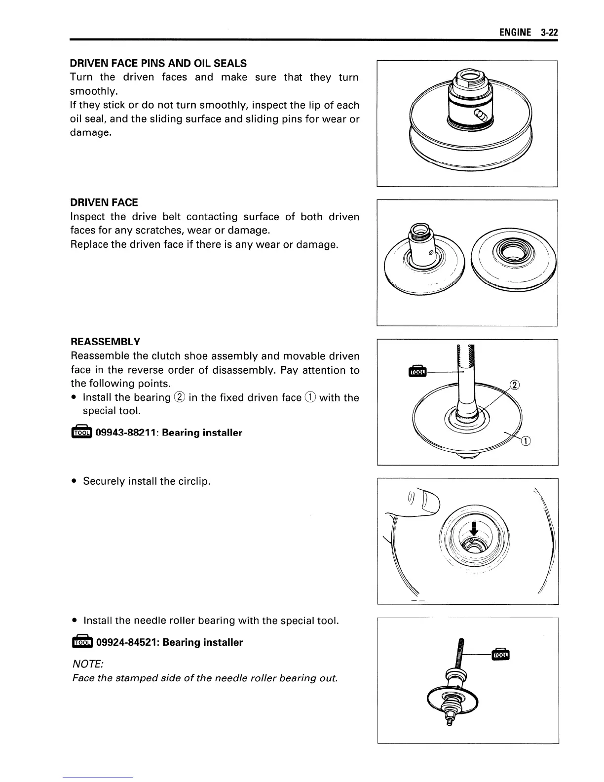 Suzuki AY50 - Driven Face Pins and Oil Seals; Reassembly