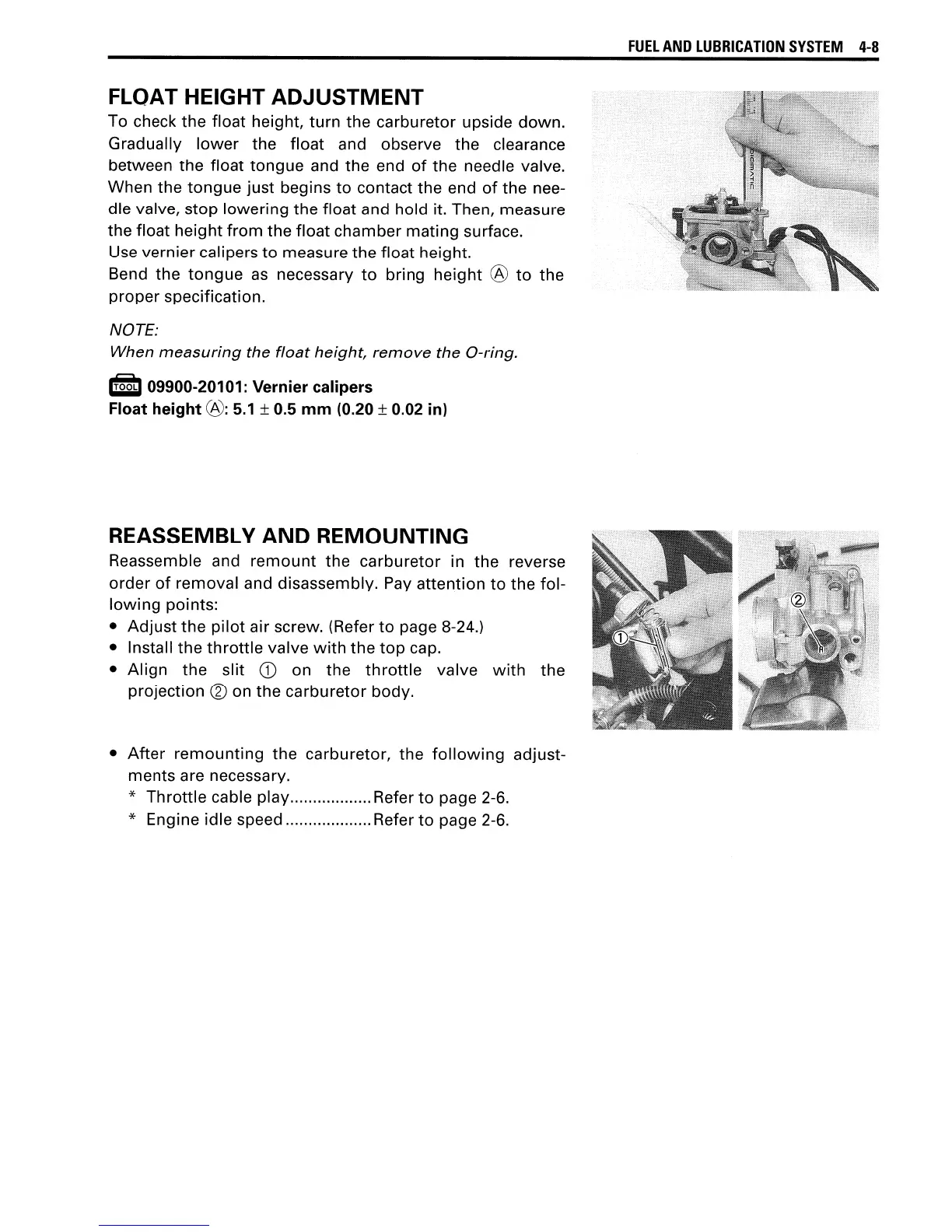 Suzuki AY50 - Float Height Adjustment; Reassembly and Remouting