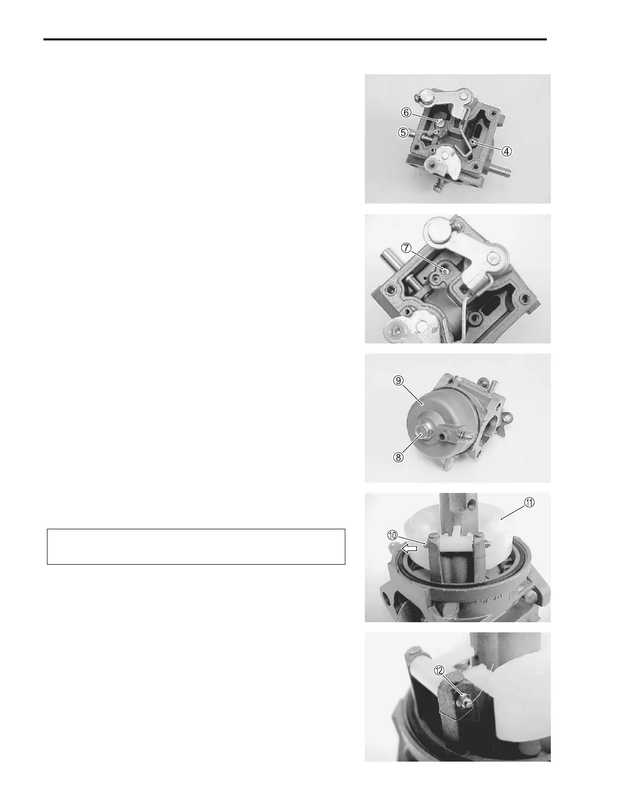 5. Remove the bolt 8 and the float chamber 9.