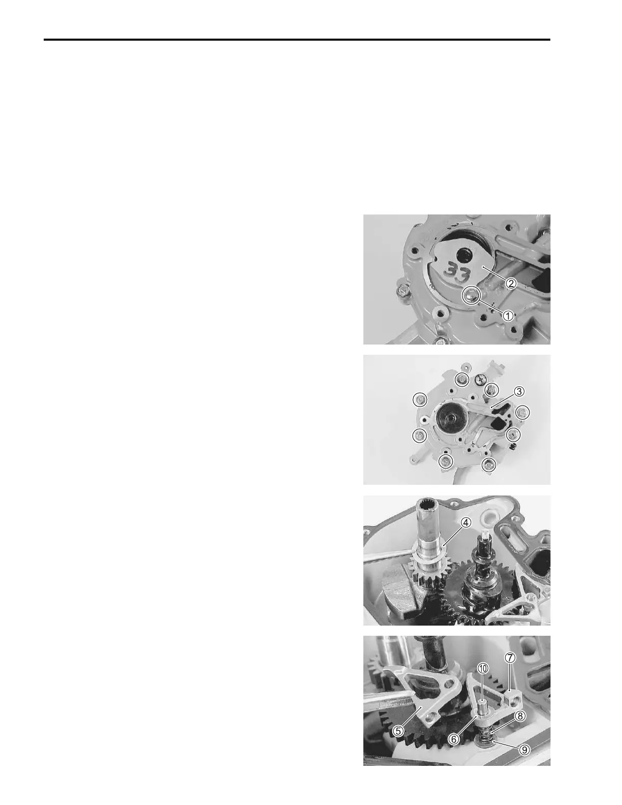 6. Remove the cam rocker arm 5, washer 6, cam rocker arm