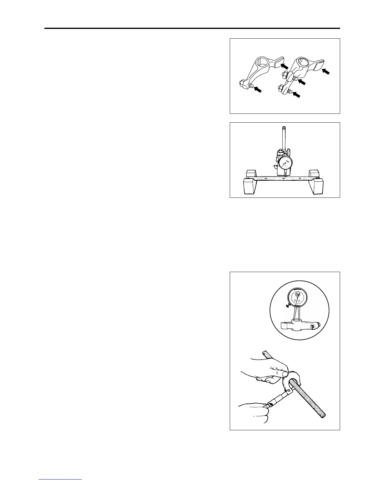 Using a micrometer and bore gauge, measure rocker arm shaft