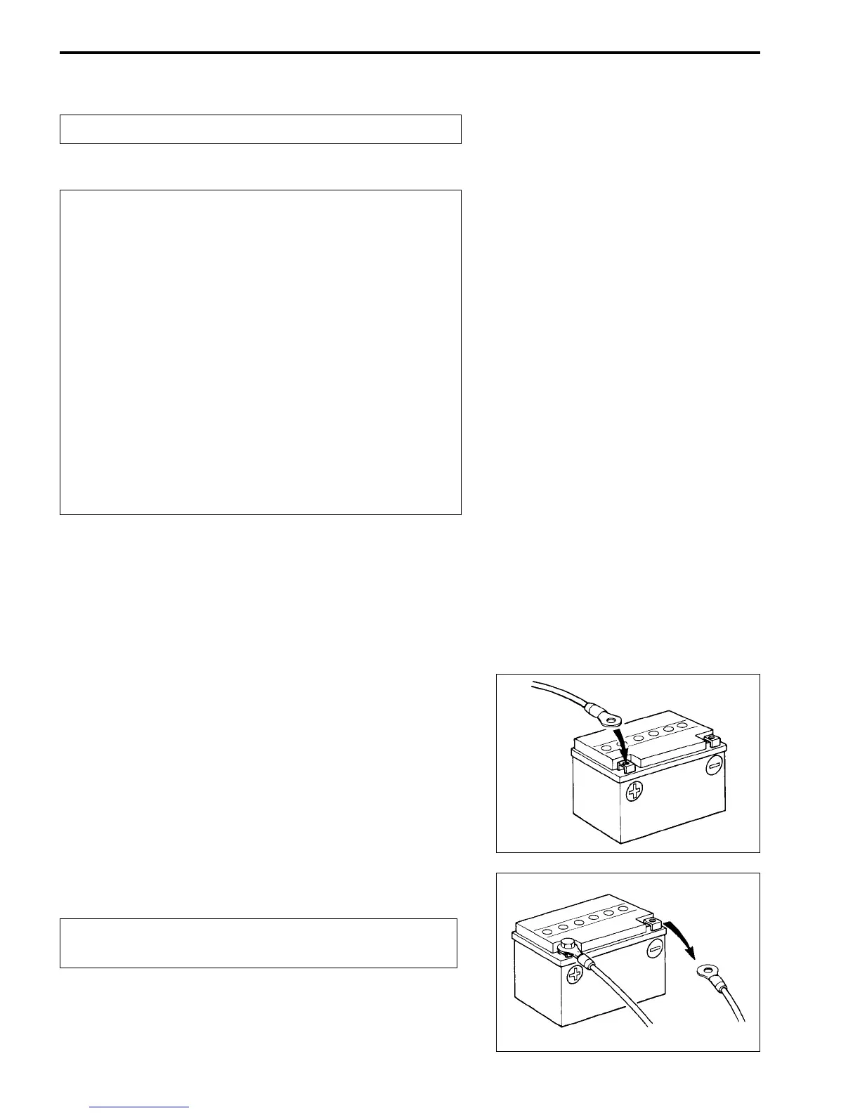 • When checking or servicing the battery, disconnect