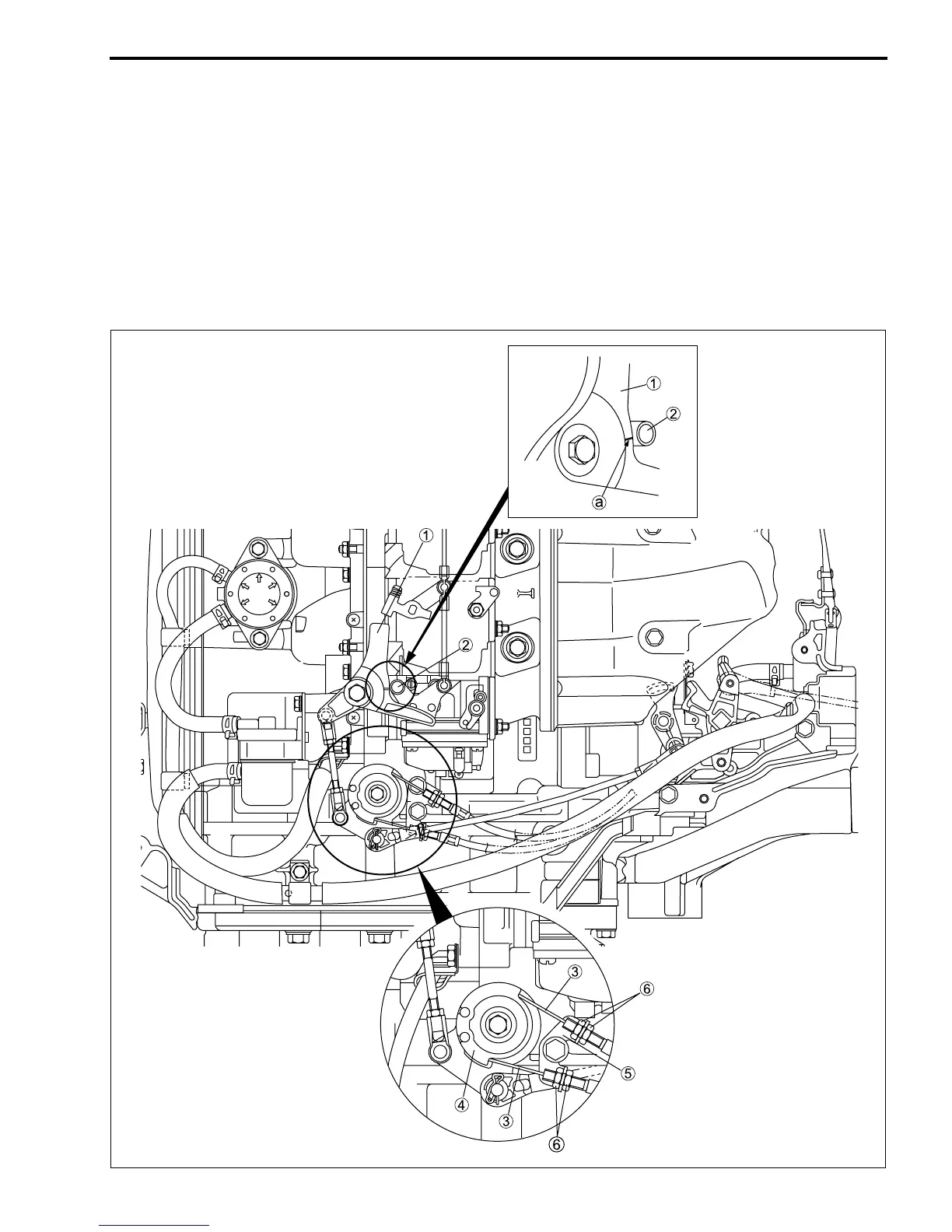 2. Align the match mark a on throttle cam 1 with the center of throttle lever roller 2 and hold this position.