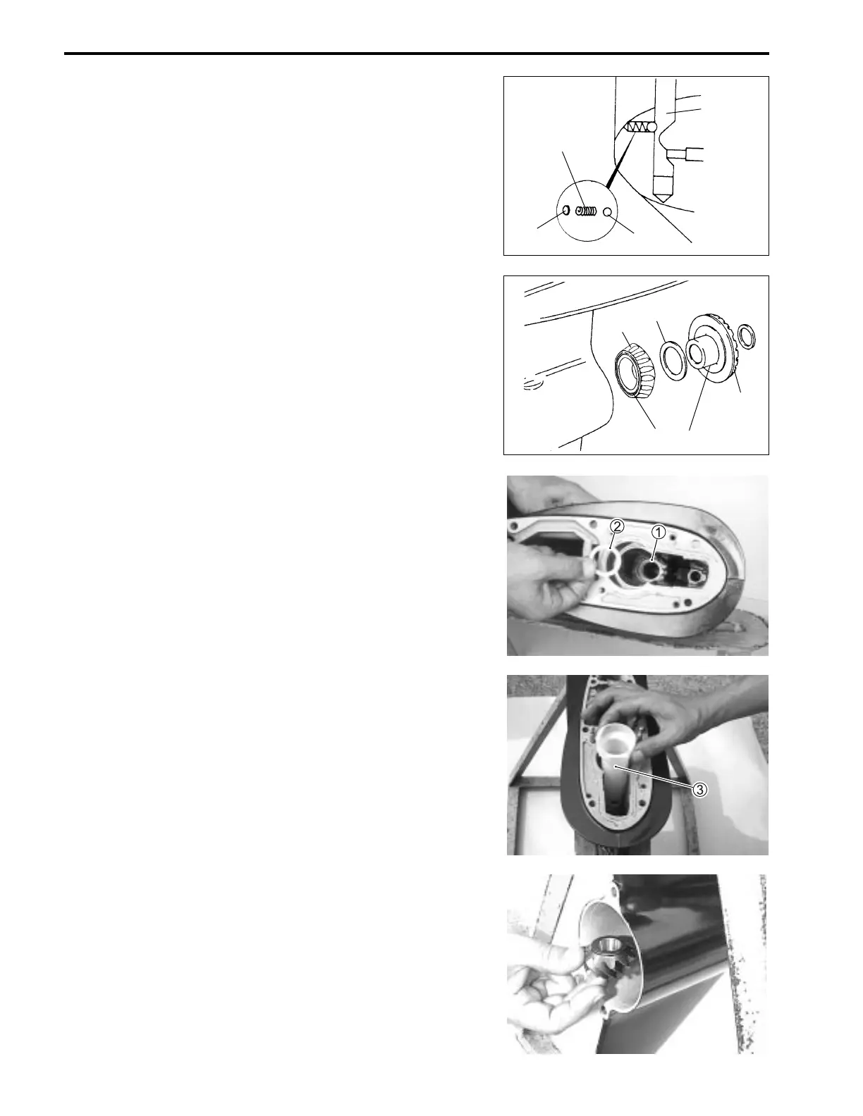 Insert the plate 1, spring 2 and detent ball 3 into gearcase.