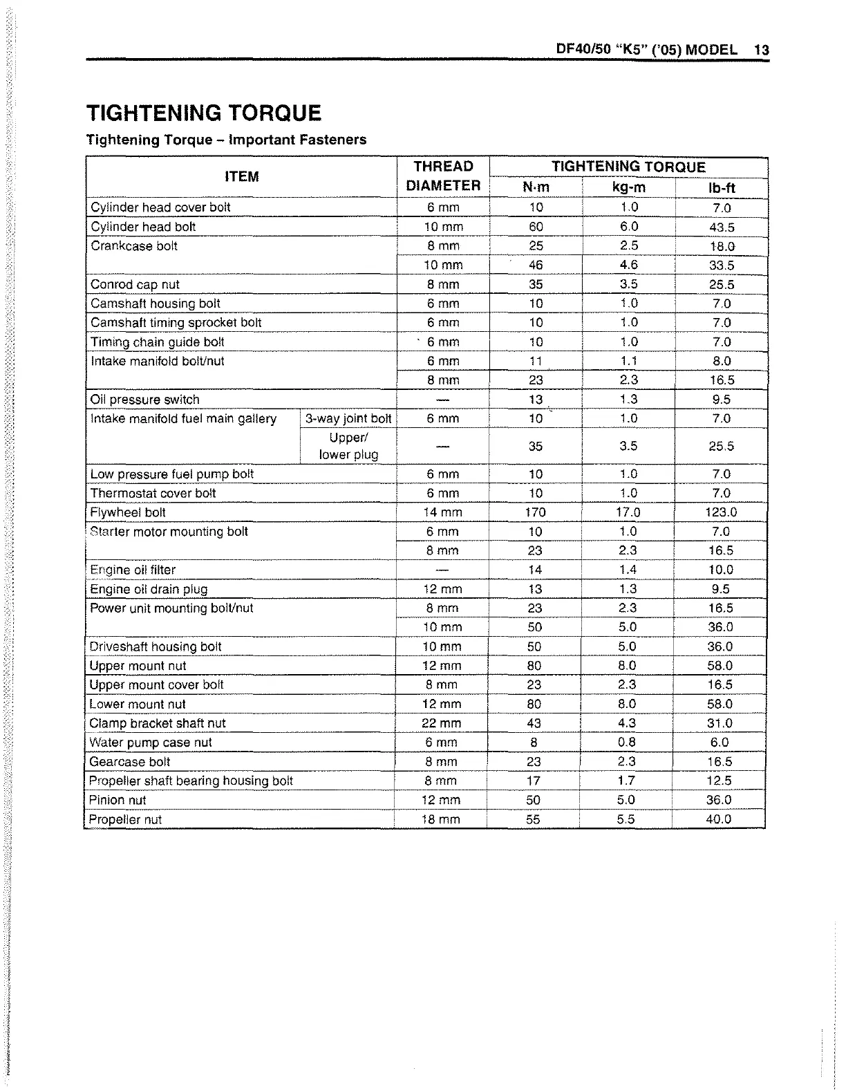 TIGHTENING TORQUE