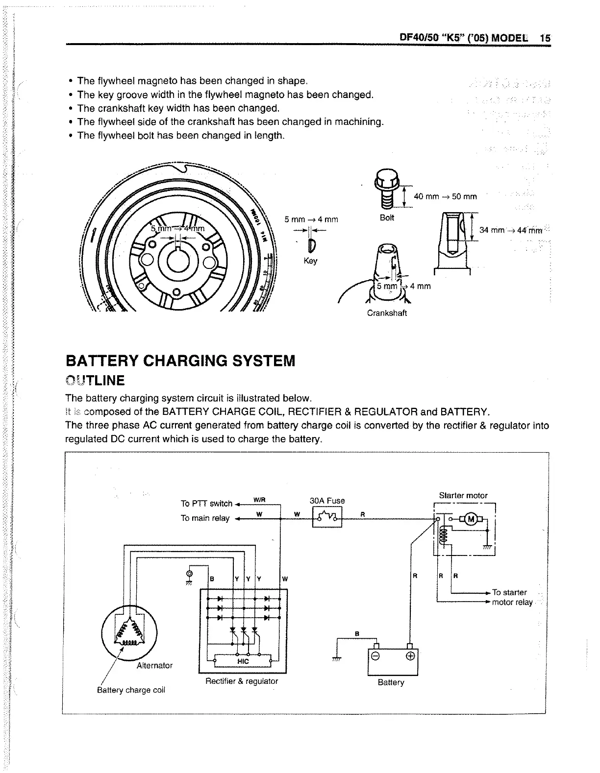 • The key groove width in the flywheel magneto has been changed.