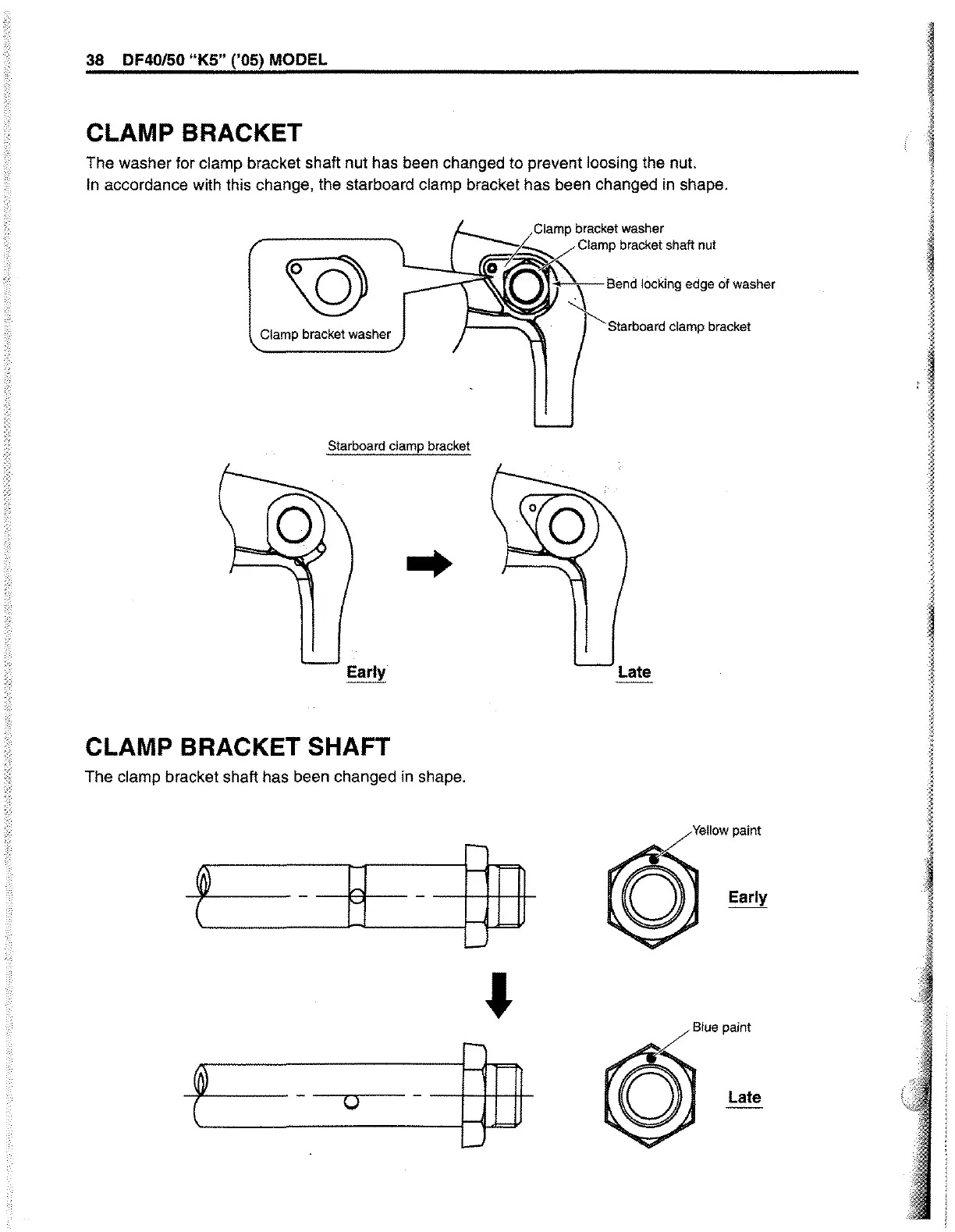 The washer for clamp bracket shaft nut has been changed to prevent loosing the nut.