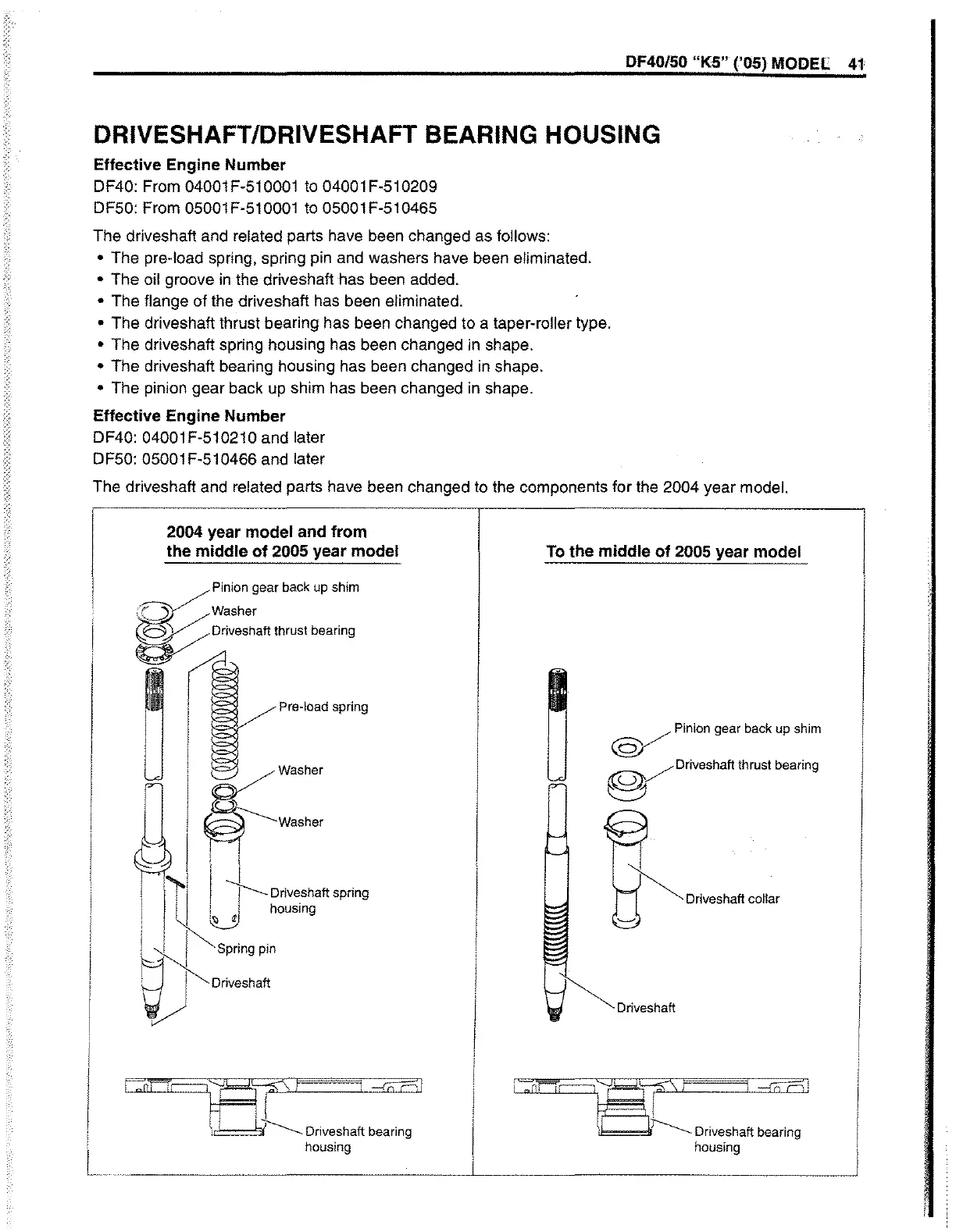 • The driveshafi thrust bearing has been changed to a taper-roller type.