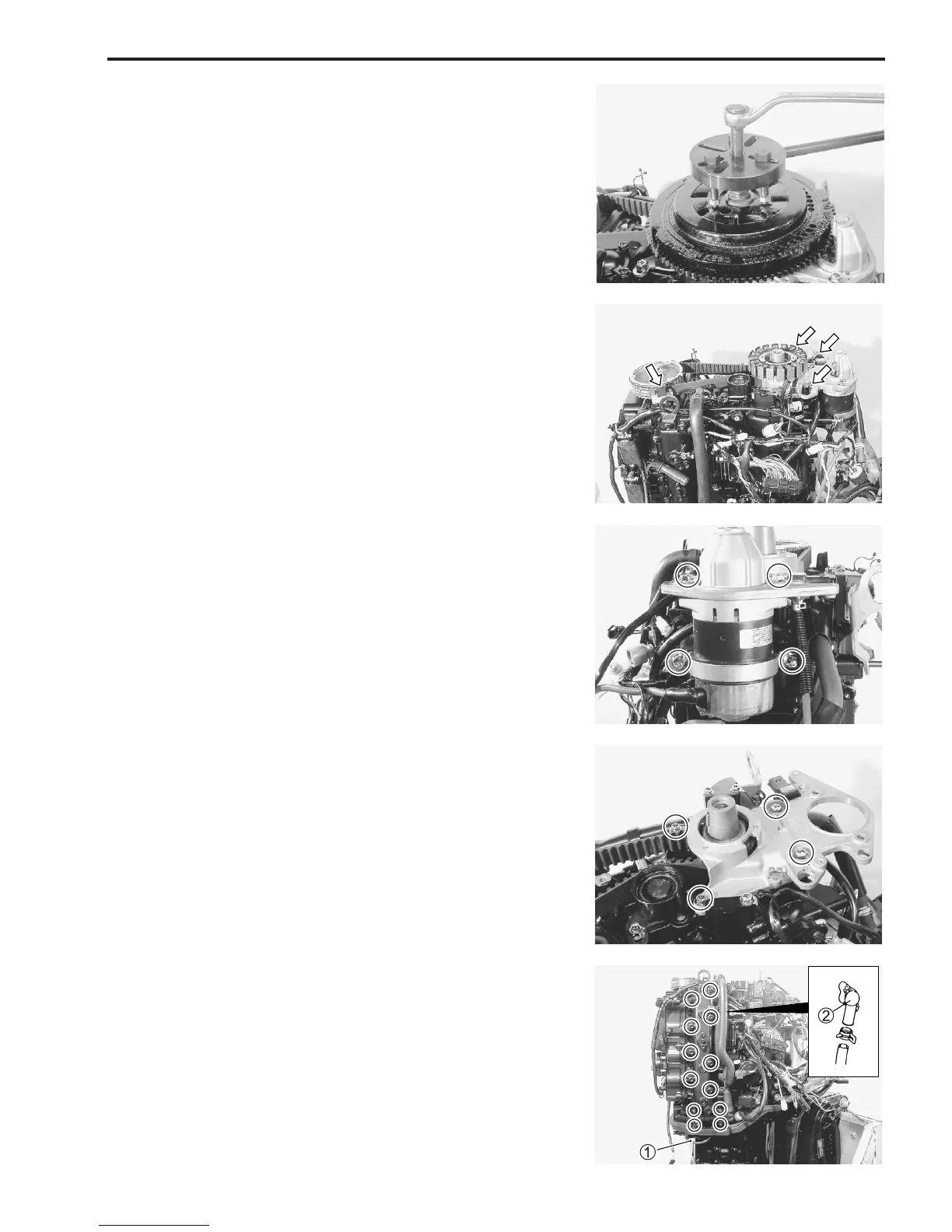 13. Remove the eight bolts, the four nuts and the exhaust mani-
