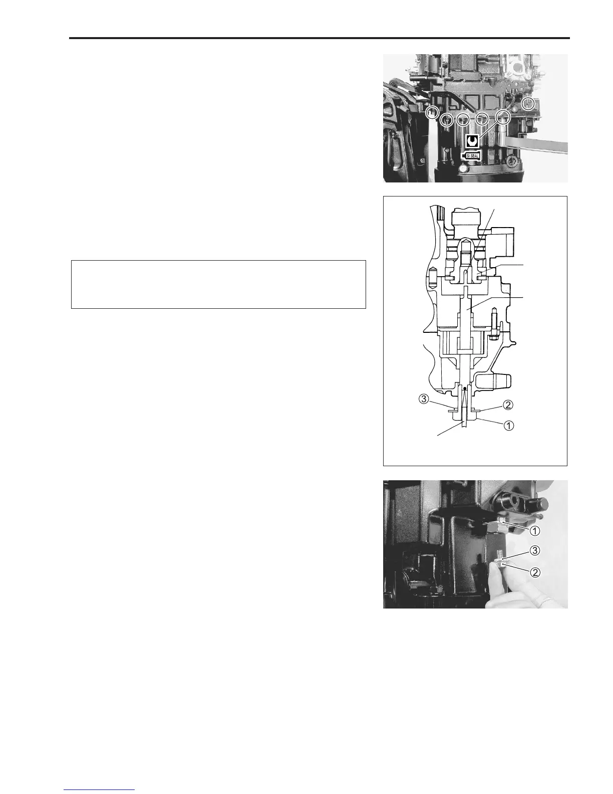 1. Screw (2 – 3 turns) the oil pump stopper 1 with the lock