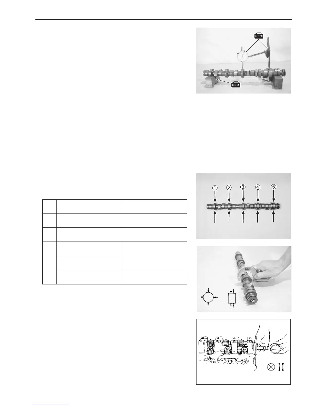 • Camshaft journal outside diameter (5 locations)
