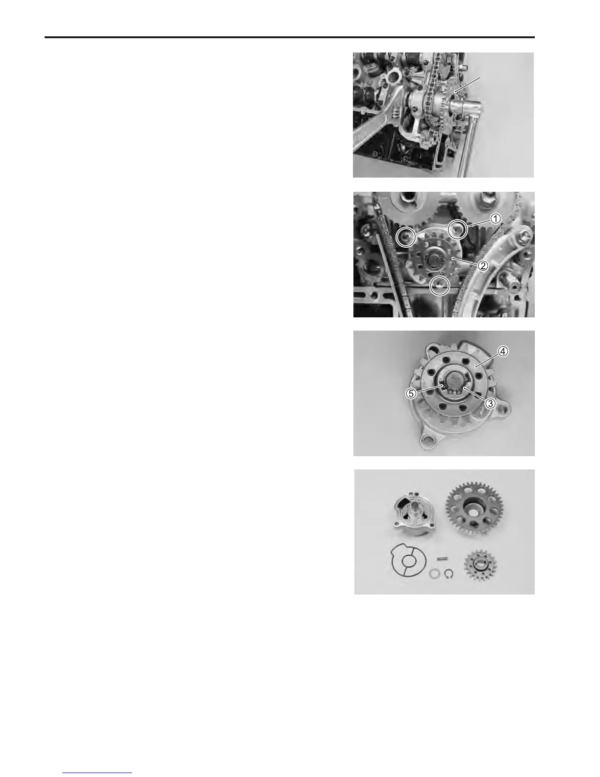 4. Remove circlip 3, driven sprocket 4, pin 5 and washer.