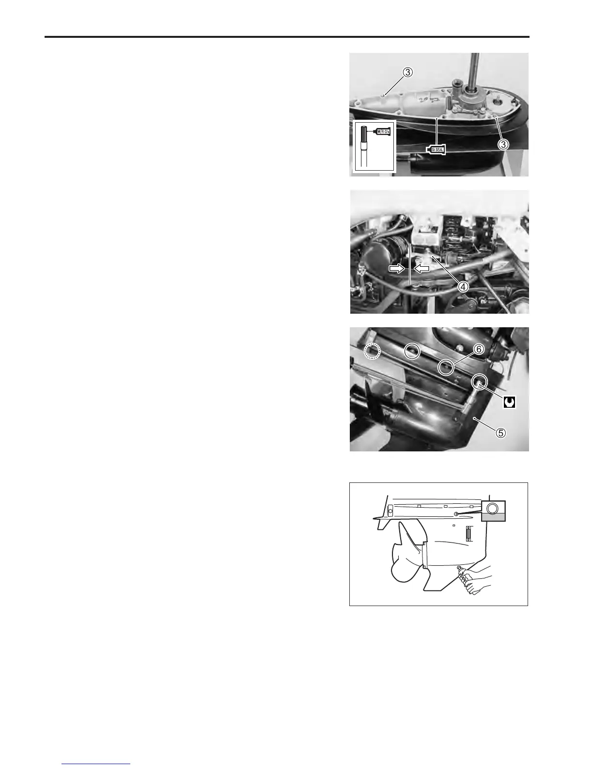 7. Apply Silicone Seal to seven gearcase bolts 6 and tighten