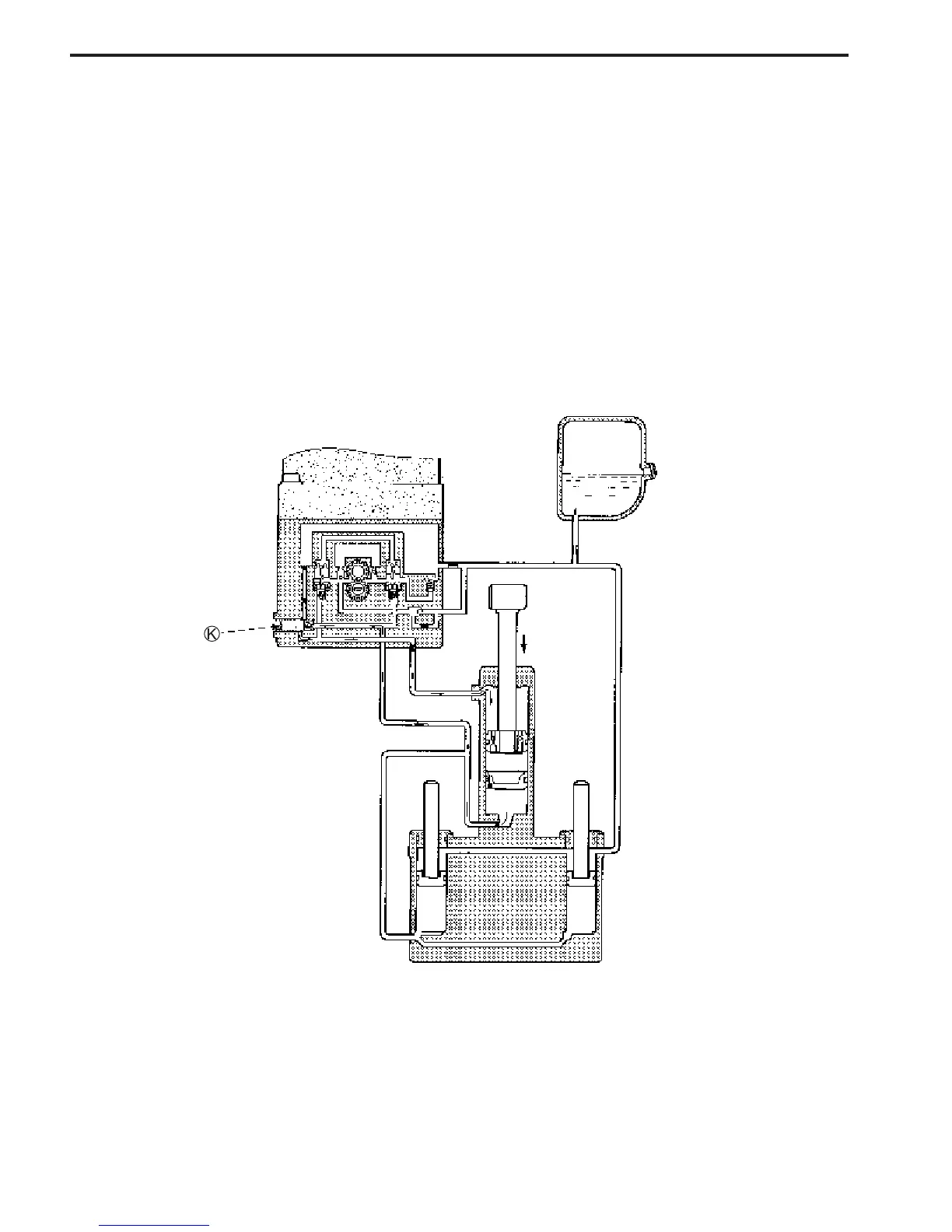 piston can accommodate. Excess oil therefore returns through the manual release valve K to the reser-