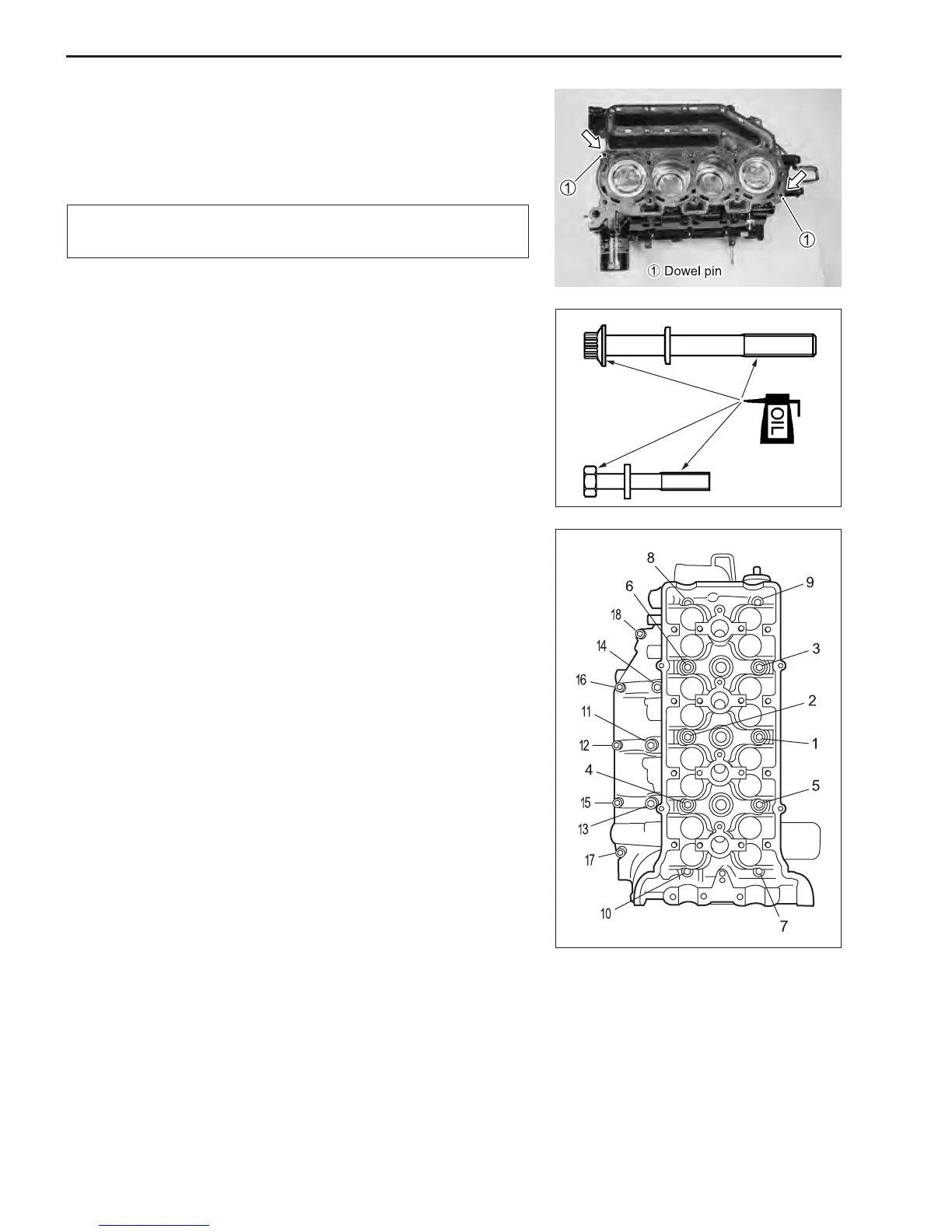 3. Apply engine oil lightly to cylinder head bolts and tighten them
