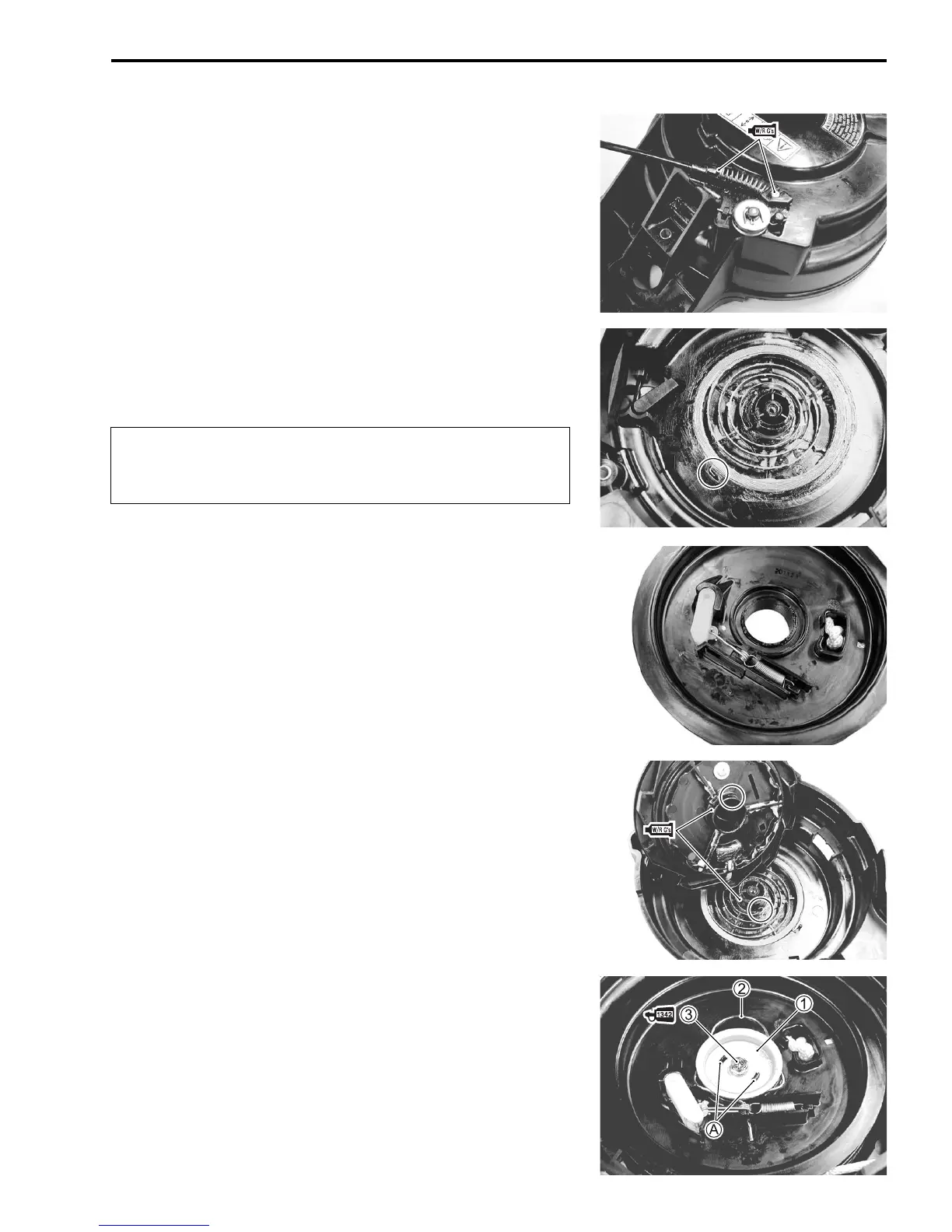 • Install the friction plate 1 (with friction spring 2) and secure it