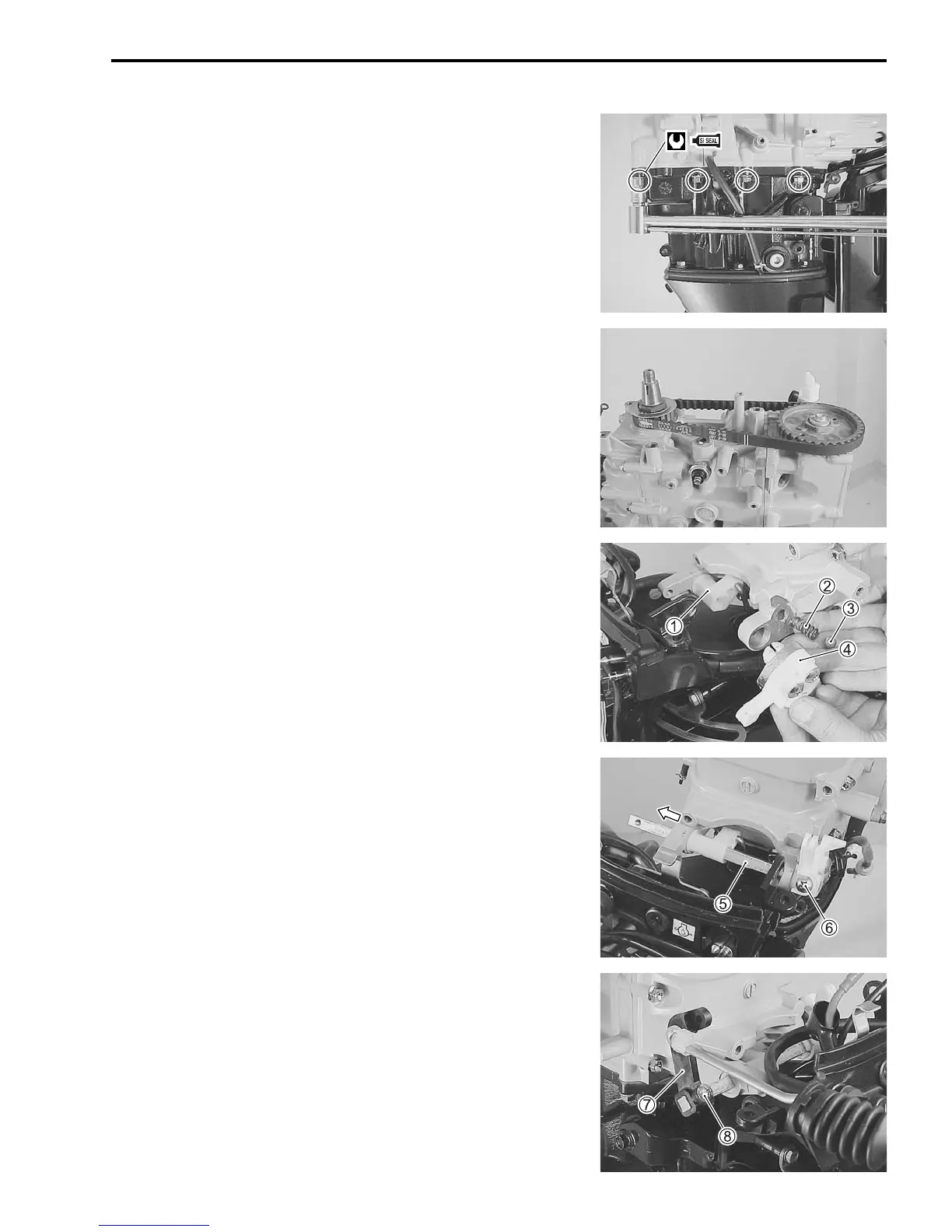 • Install clutch lever shaft 5 by passing it from PORT side