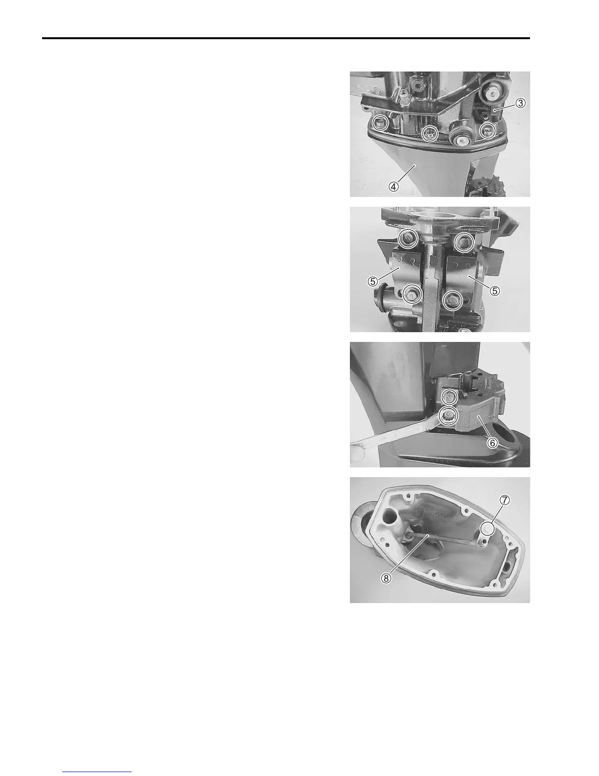 8. Remove six bolts and oil pan 3 from the driveshaft housing
