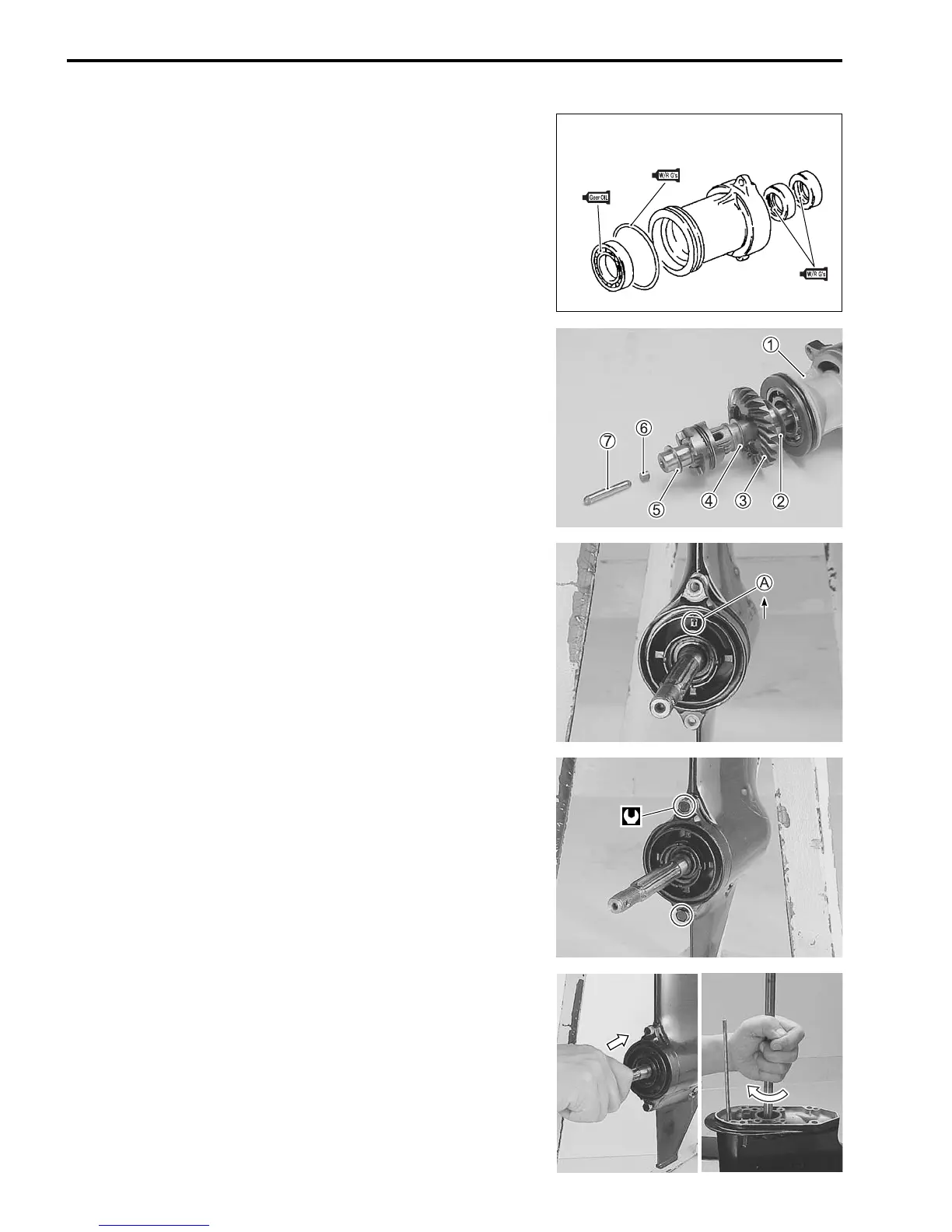 • Insert the push pin 6 and push rod 7 into propeller shaft.