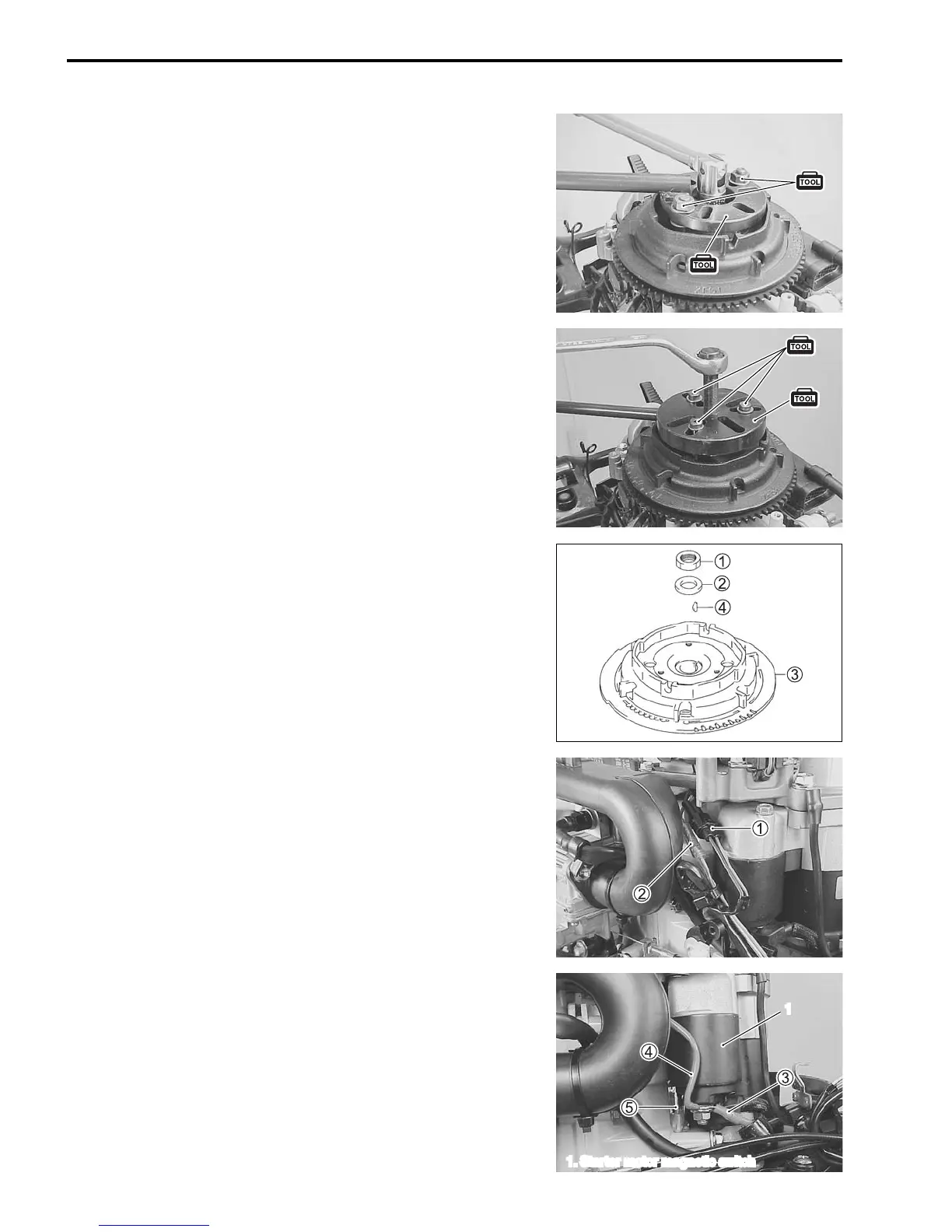 Disconnect the red lead wire 5 from starter motor magnetic