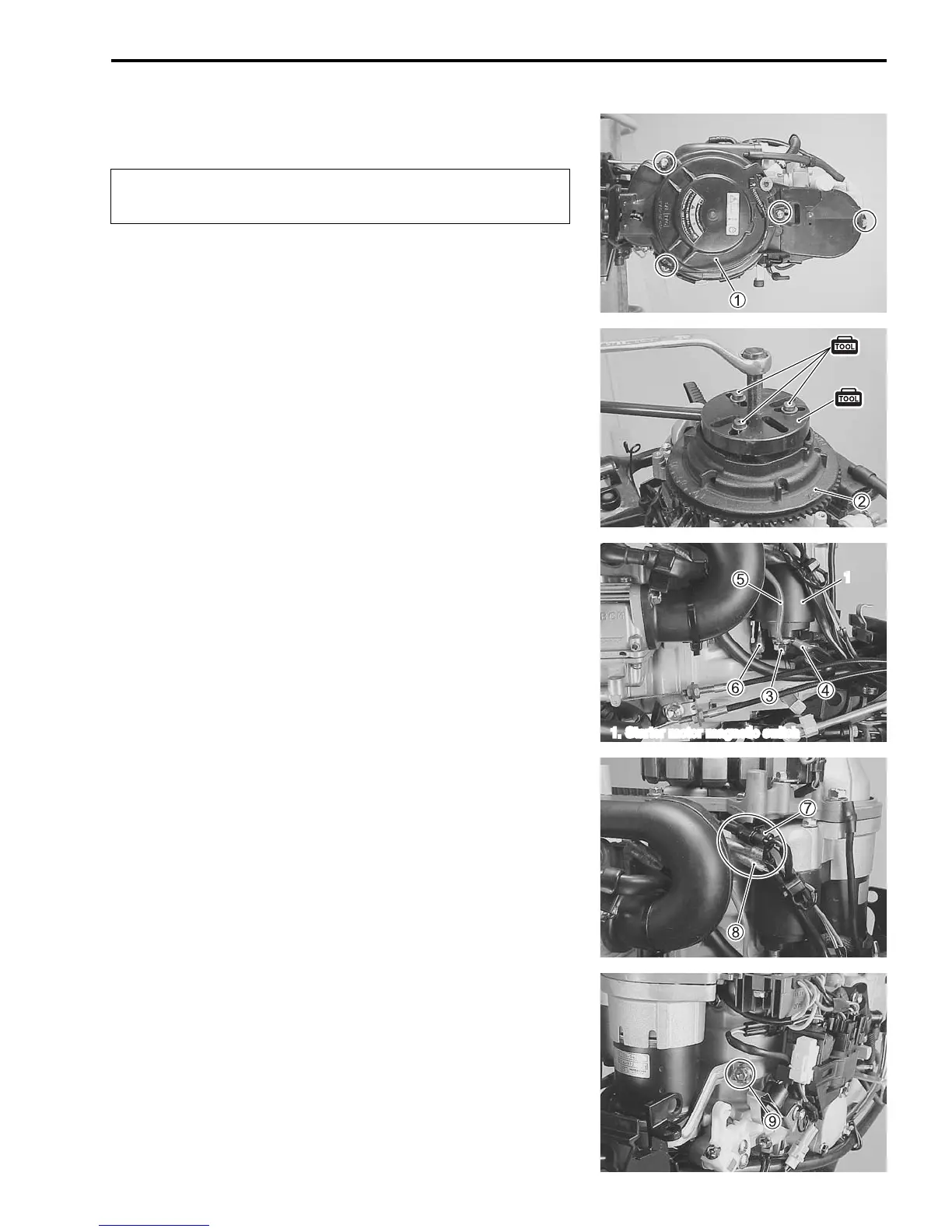 5. Remove the PORT side bolt 9 securing starter motor band.