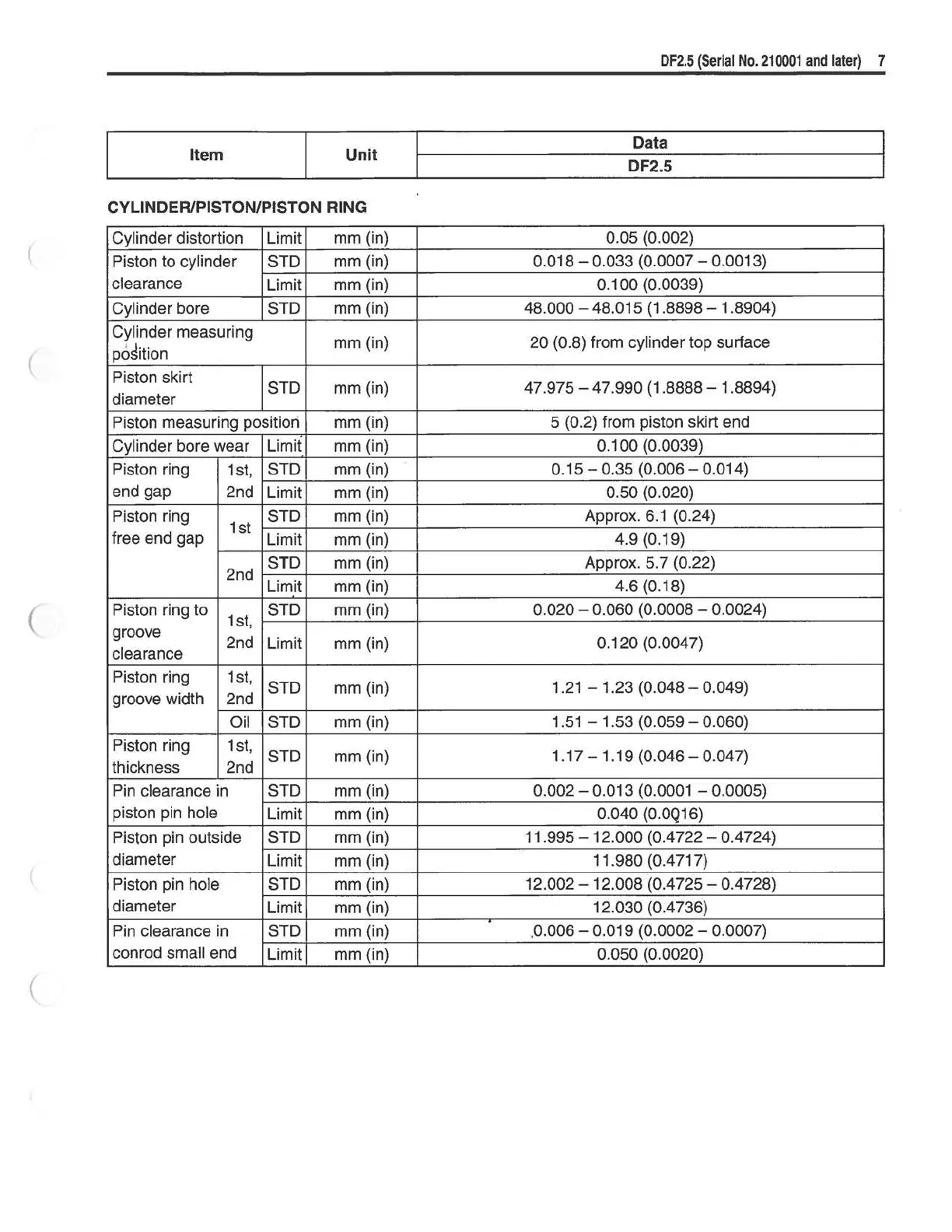 Piston measuring position mm (in)