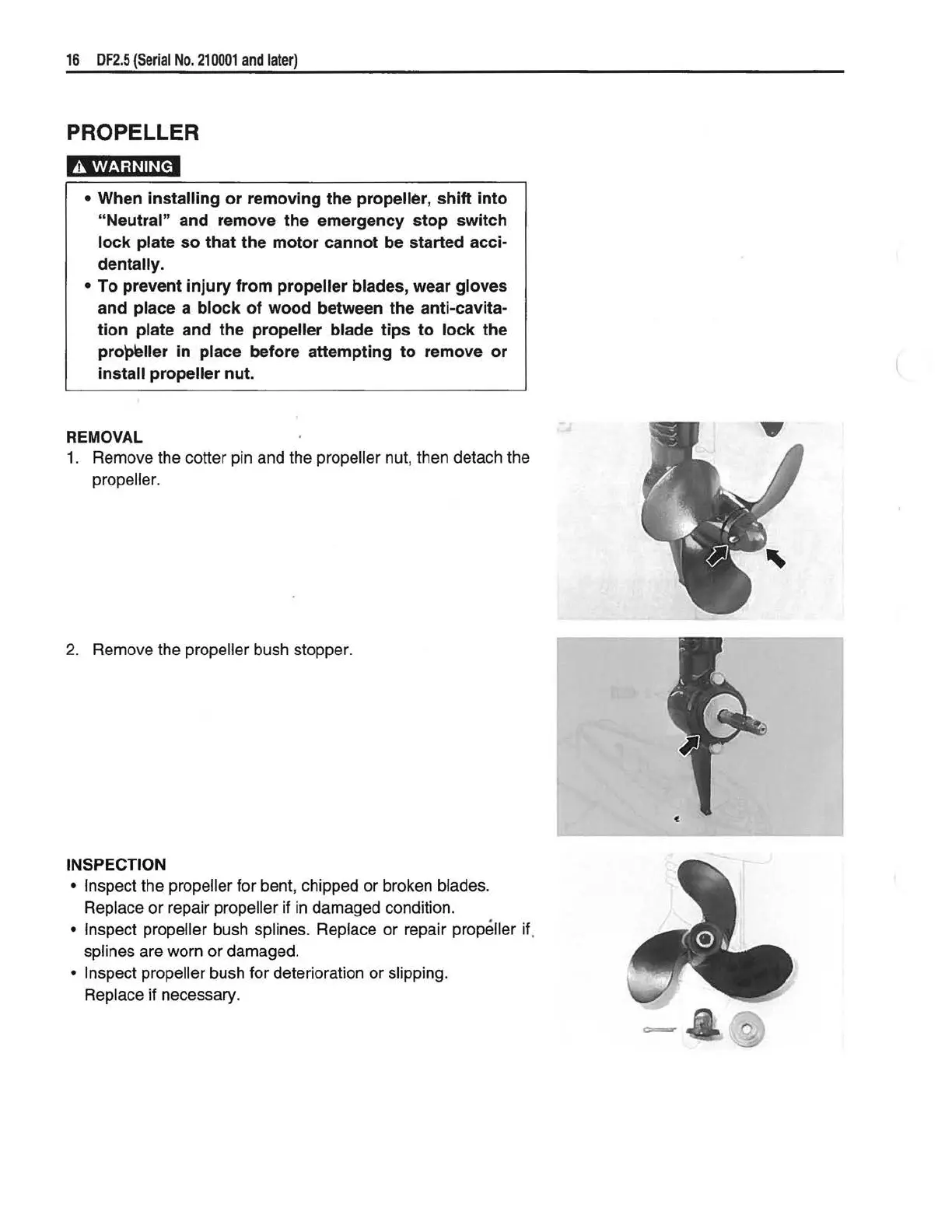 • Inspect propeller bush for deterioration or slipping.