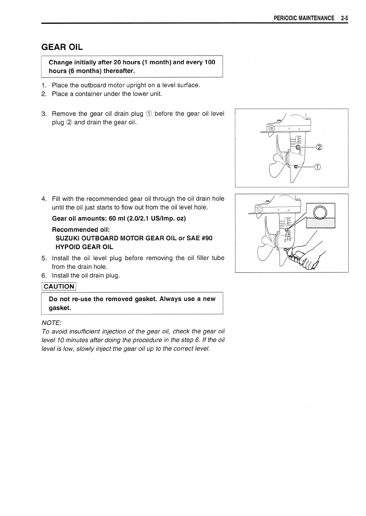 Gear oil amounts: 60 ml (2.0/2.1 US/Imp. oz)