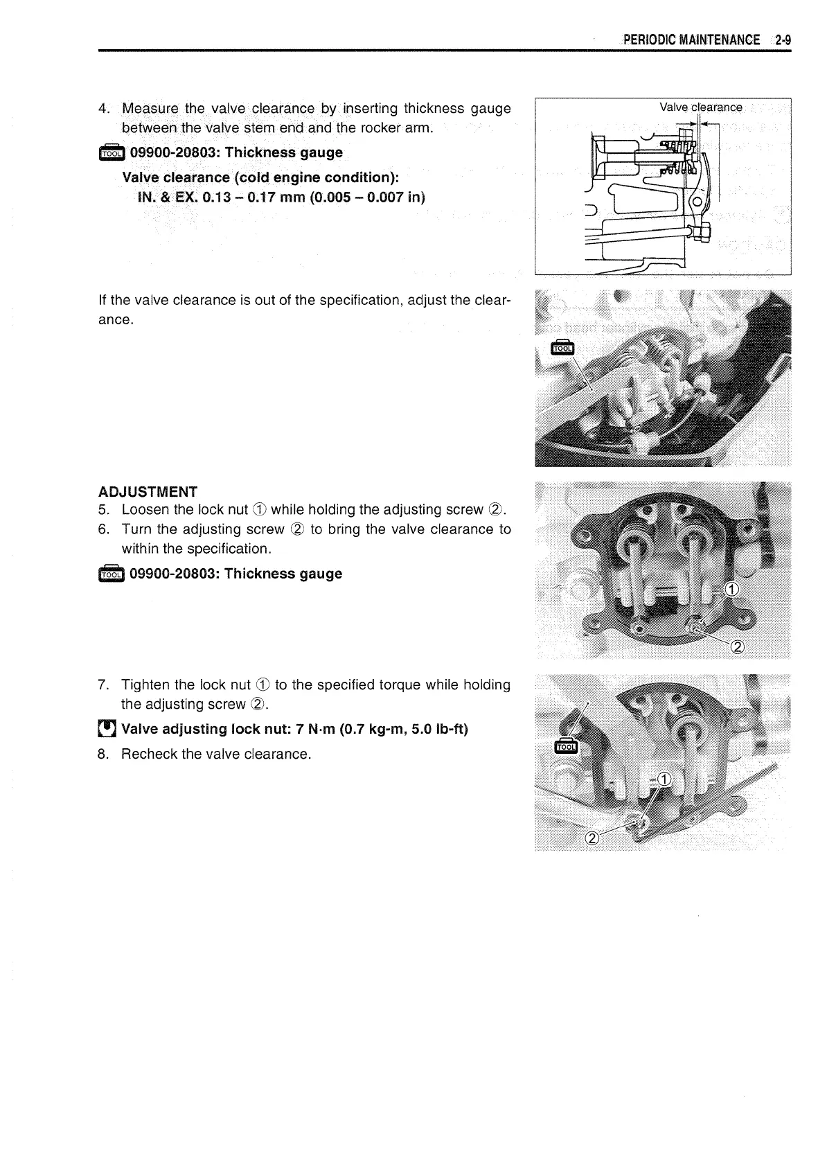 adjusting lock nut: 7 N·m (0.7 kg-m, 5.0 lb-ft)