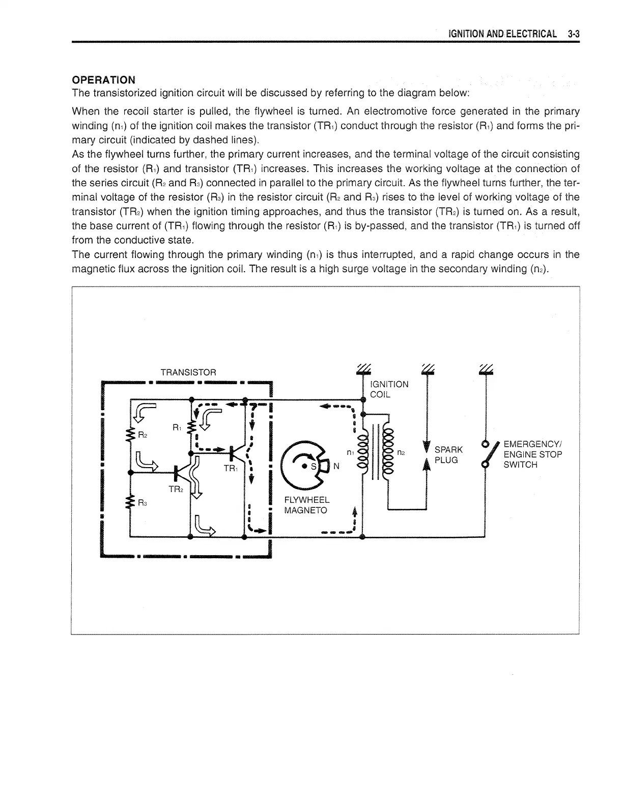 The transistorized ignition circuit will be discussed by referring to the diagram below: