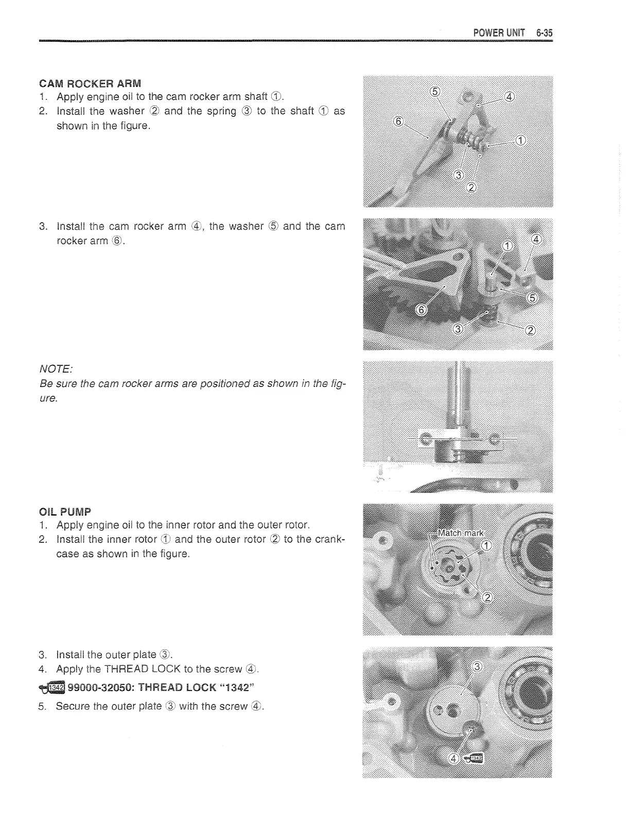 Be sure the cam rocker arms are positioned as shown the