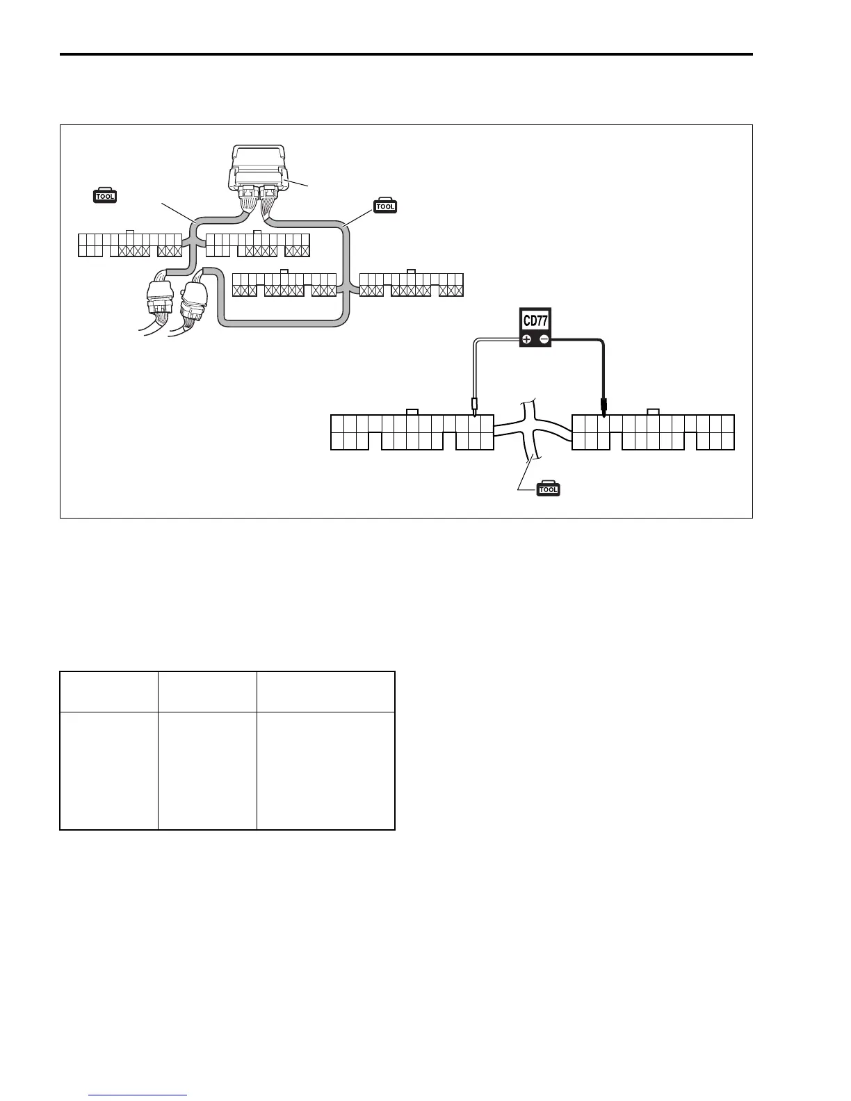 1. Connect test cord between ECM and wire harness as shown