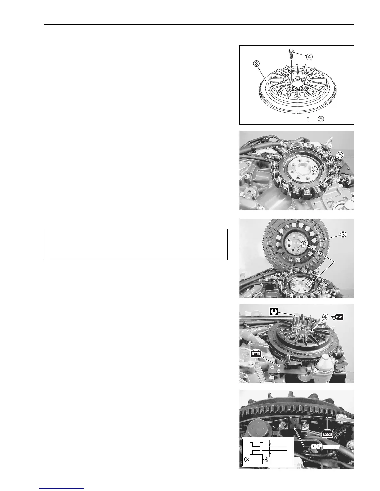 • Apply THREAD LOCK “1342” to flywheel bolts