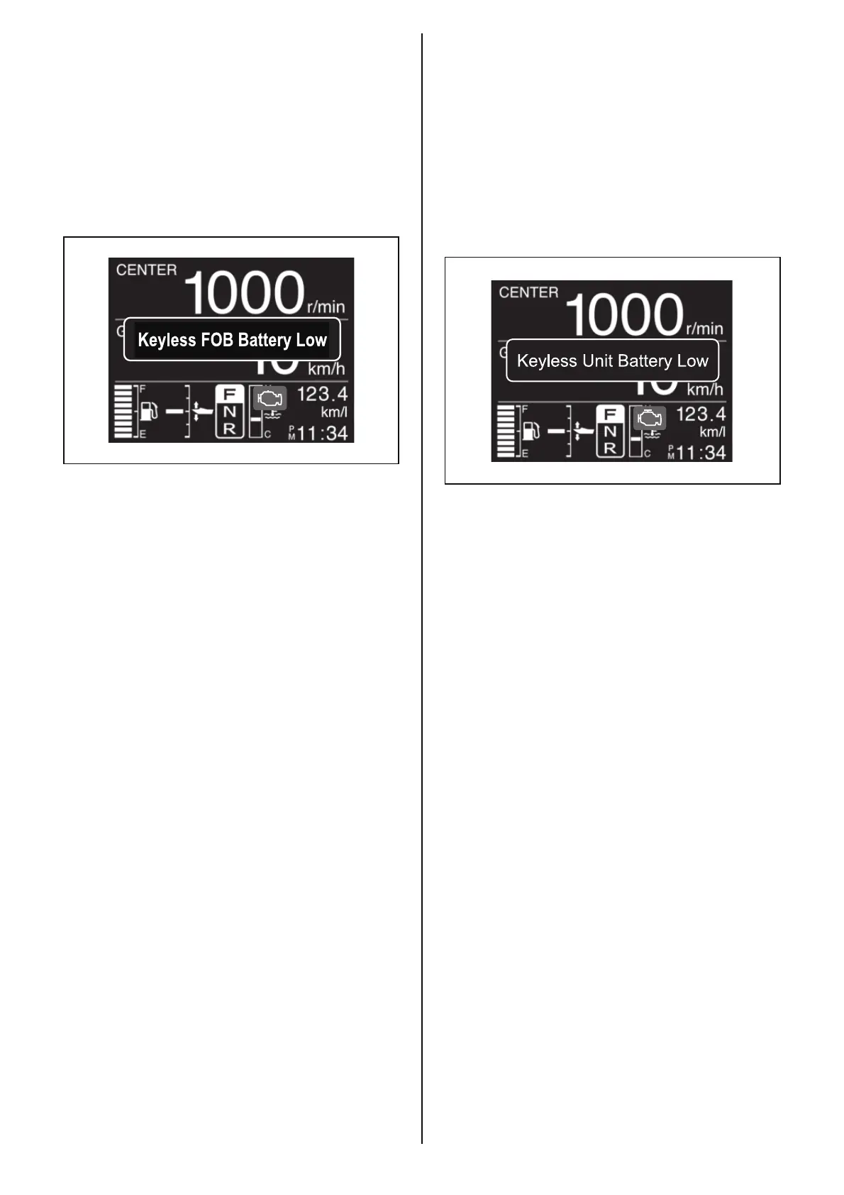 • If the message “Keyless Unit Battery Low” is