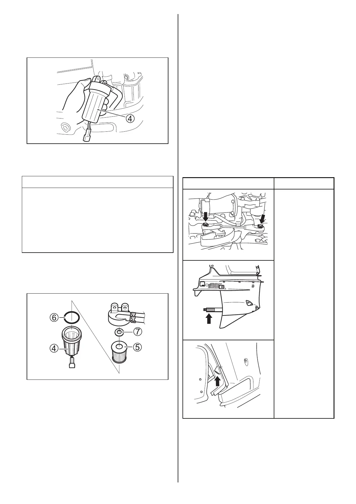 If any water exists in the fuel filter cup, remove