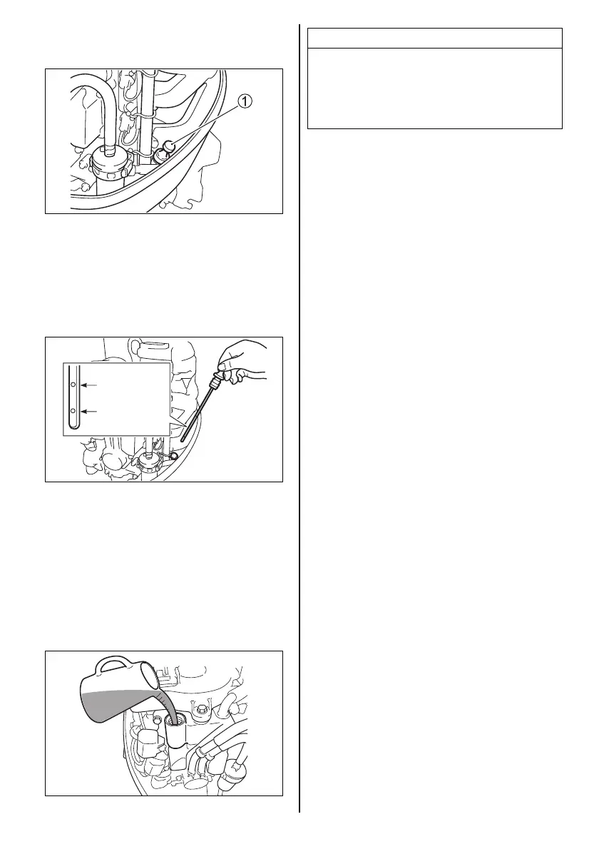 2. Pull out the oil dipstick 1 and wipe oil off