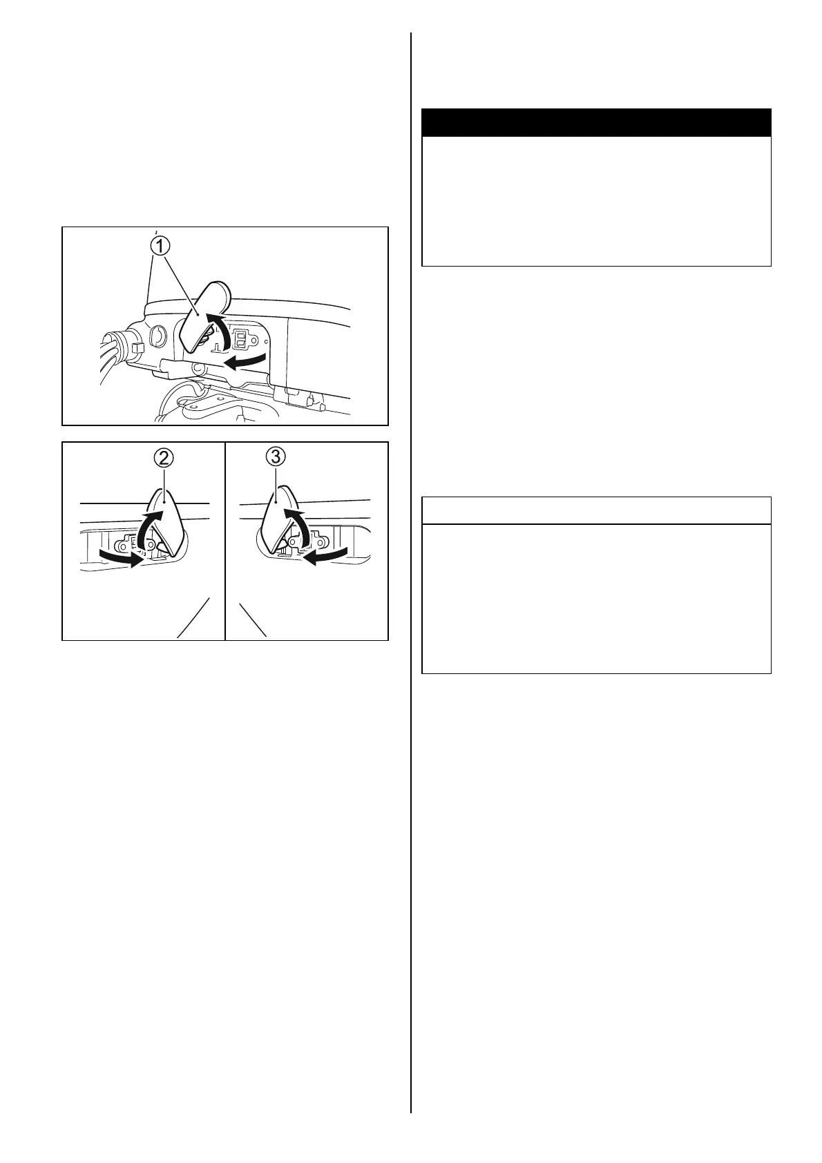 1, 2 and 3. Pull out and turn up the levers to
